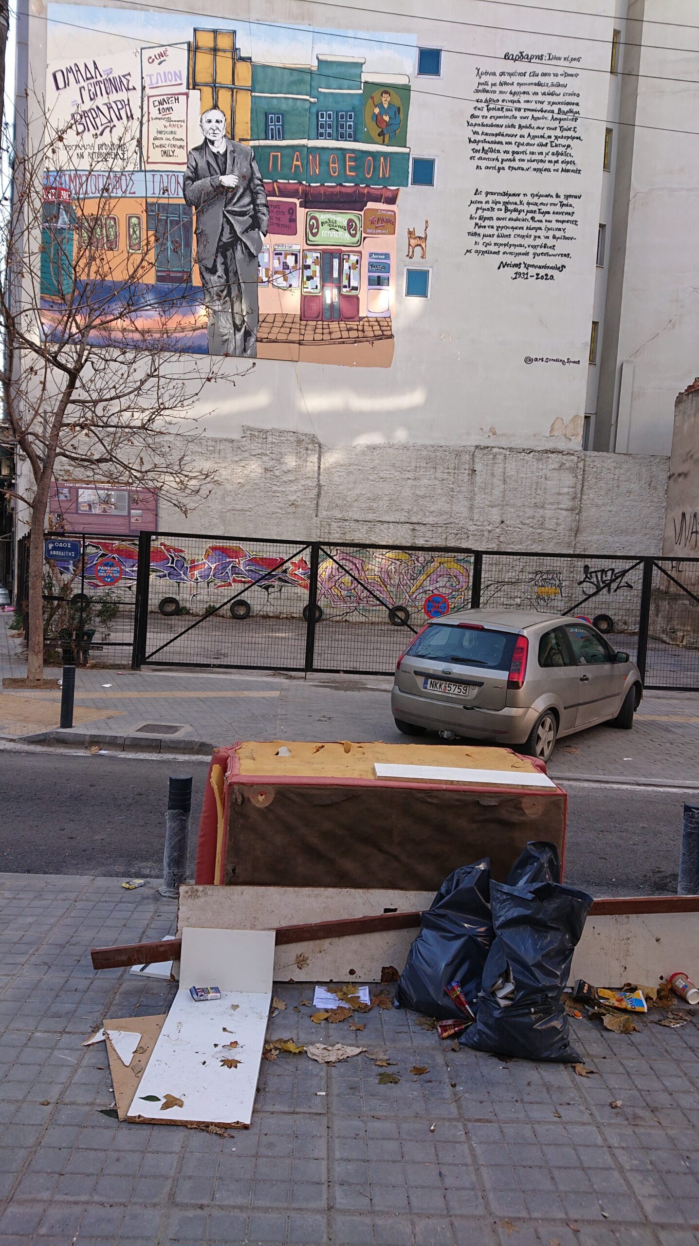 “Μπροστά” στον Ντίνο Χριστιανόπουλο, τα ογκώδη αντικείμενα, αλλά και τα σκουπίδια στις μαύρες σακούλες στο πεζοδρόμιο, του Hotel Holiday Inn ανήμερα Χριστουγέννων, “είδαν” ηλιόλουστη ημέρα και “λιάζονται”, με την Σφραγίδα, την υπογραφή και την Αρωγή του ανύπαρκτου, ανίκανου, παράλυτου, τρισάθλιου Δήμου της Θεσσαλονίκης”, αναφέρει τακτικός αναγνώστης της parallaxi.