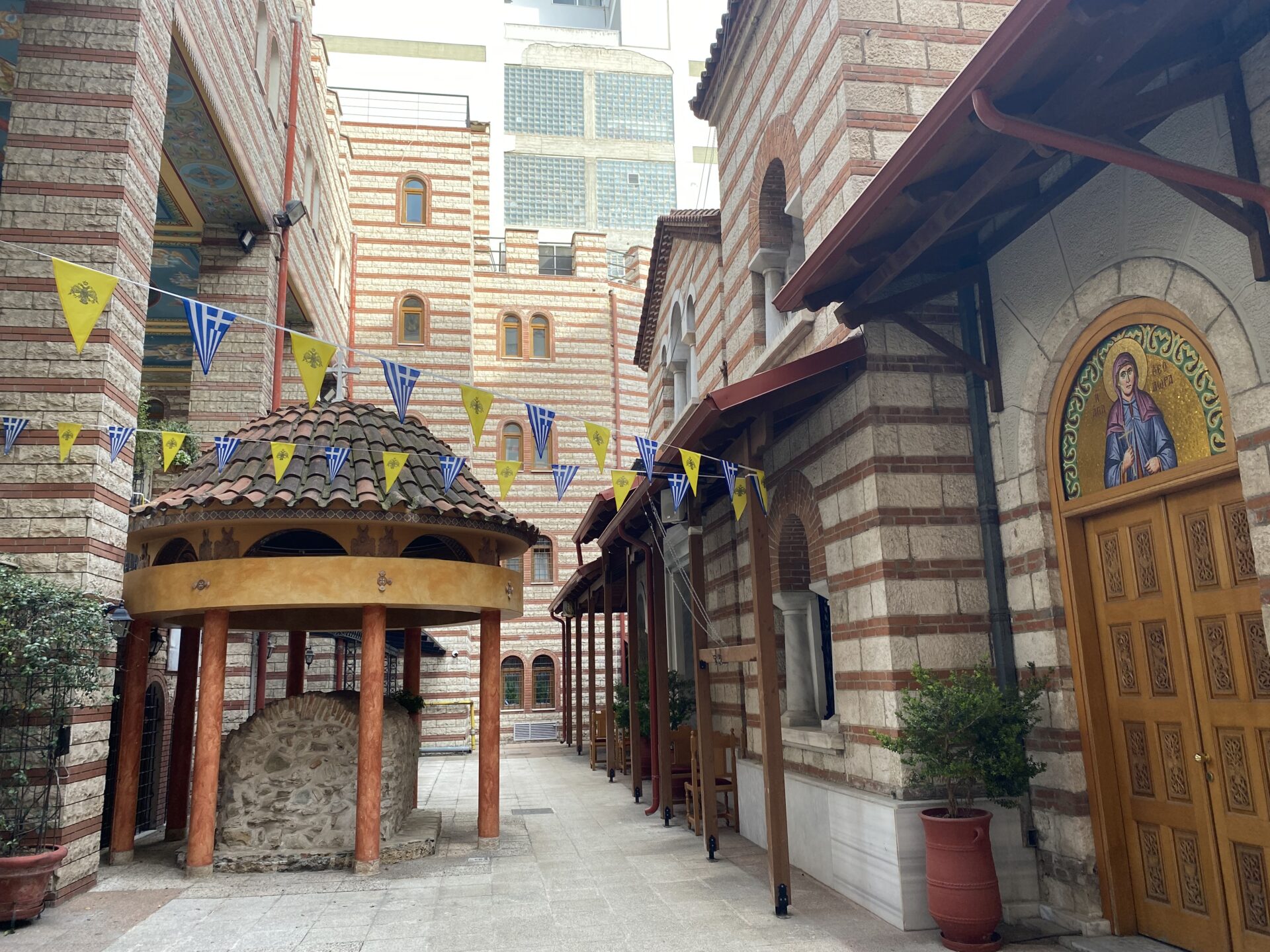 Λίγο πιο πέρα, στον Ιερό Ναό Αγίας Σοφίας, το προαύλιο γεμίζει παιδιά που παίζουν. Άλλοι γονείς πηγαίνουν τα παιδιά τους, μπαίνουν στην εκκλησία και κάθονται. Μια μητέρα προσπαθεί να «τιθασεύσει» τα παιδιά της που είναι γεμάτα ενέργεια. Παίζουν έξω από την εκκλησία. Οι τελευταίοι δημόσιοι χώροι.