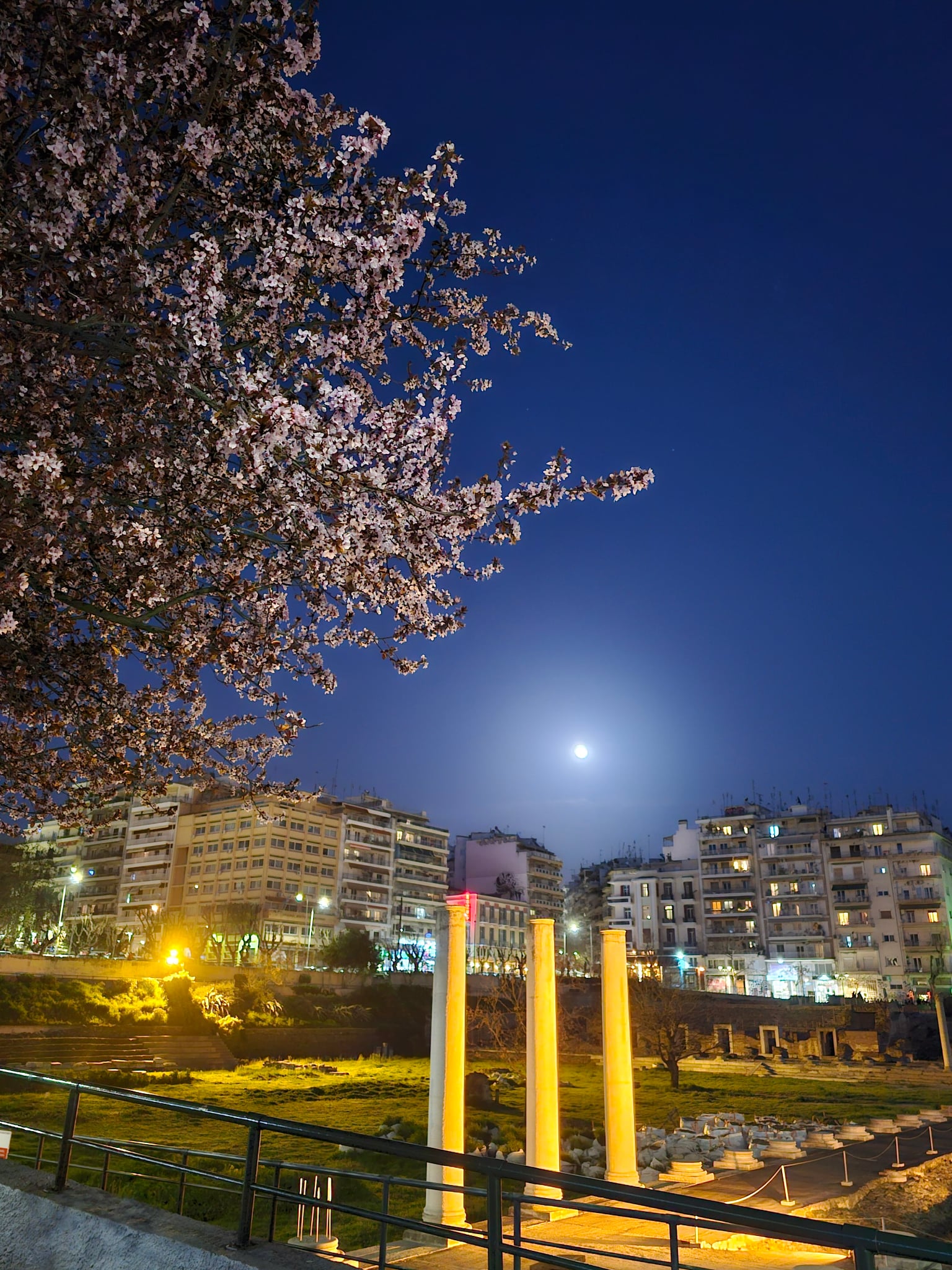 Το ανθισμένο φεγγάρι πάνω από την Αρχαία Αγορά της Θεσσαλονίκης, προάγγελος της Άνοιξης