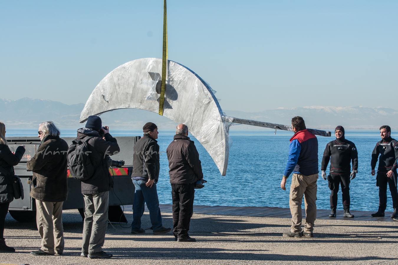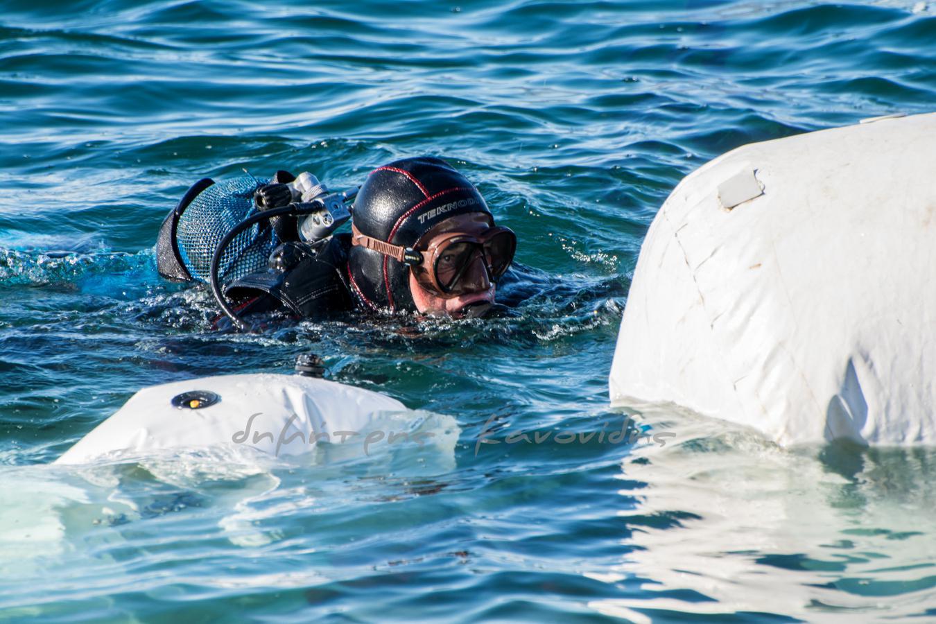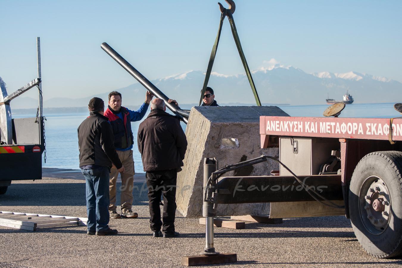 Συνεργεία μεταφοράς και βατραχάνθρωποι βρέθηκαν στο σημείο για την τοποθέτησή του ενώ την Παρασκευή το βράδυ αναμένεται να γίνει η ανύψωσή του μέσα από τη θάλασσα, όπως ανέφερε ο Γιάννης Μπουτάρης στο τελευταίο δημοτικό συμβούλιο.