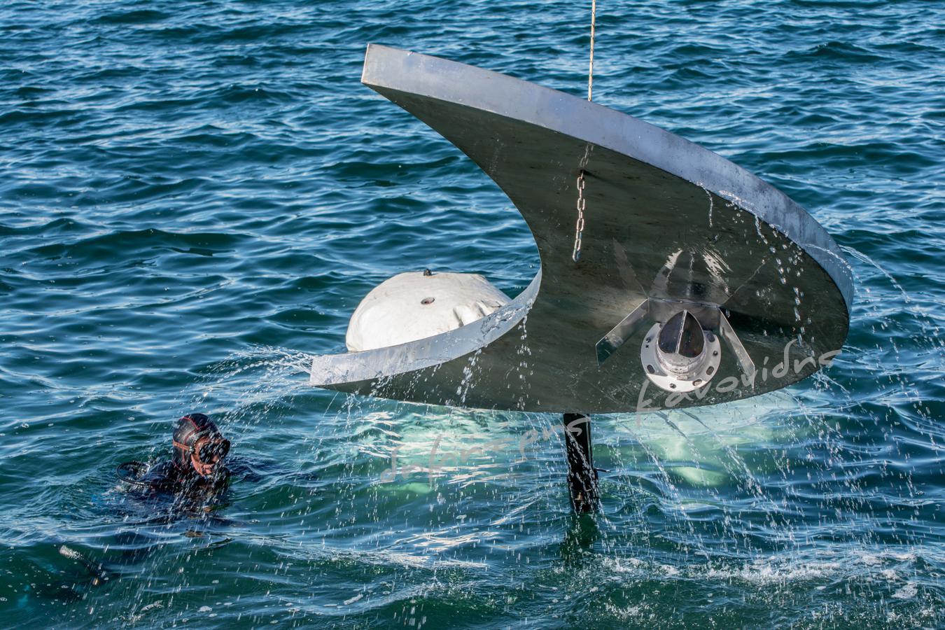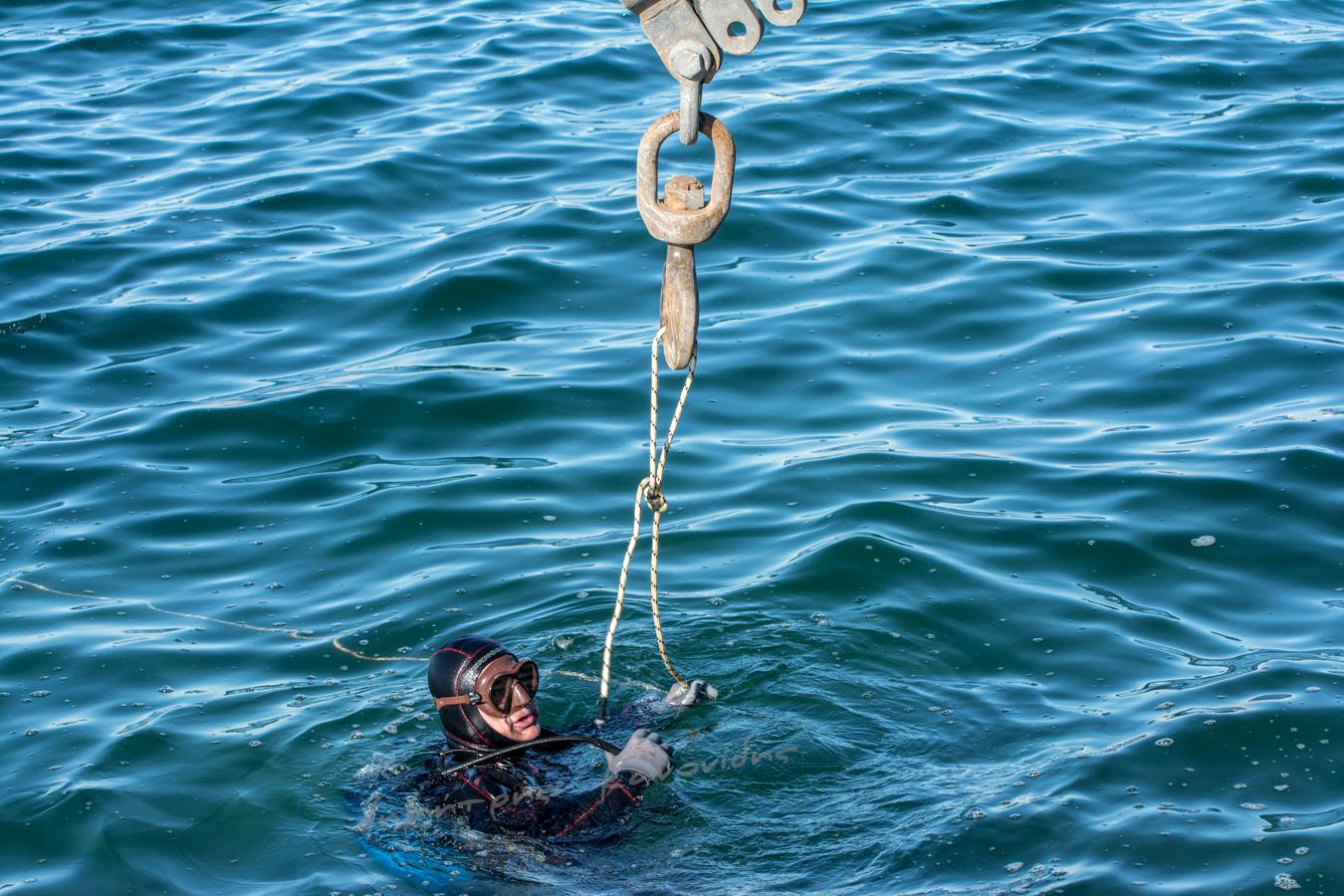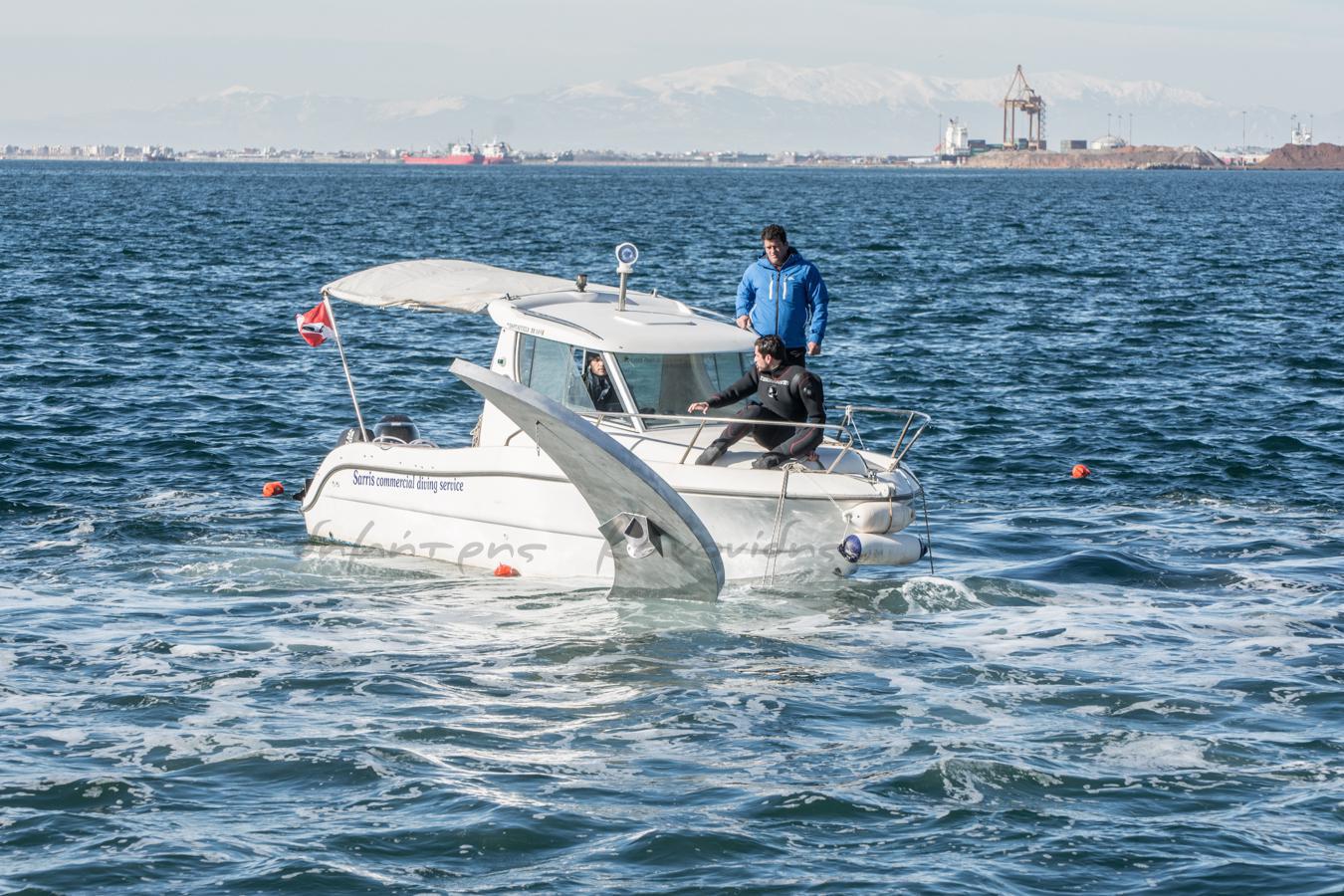 Συνεργεία μεταφοράς και βατραχάνθρωποι βρέθηκαν στο σημείο για την τοποθέτησή του ενώ την Παρασκευή το βράδυ αναμένεται να γίνει η ανύψωσή του μέσα από τη θάλασσα, όπως ανέφερε ο Γιάννης Μπουτάρης στο τελευταίο δημοτικό συμβούλιο.