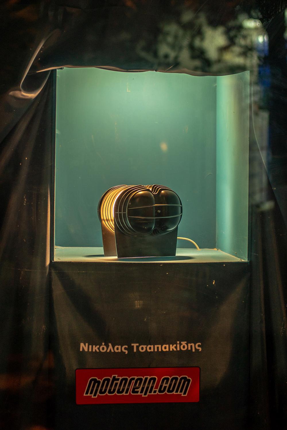 Ως πρώτο δείγμα, ο Νικόλας Τσαπακίδης παρουσιάζει αντικείμενα στα οποία εξαρτήματα μοτοσικλετών και αυτοκινήτων, με ιστορική και συλλεκτική αξία, αποκτούν μια νέα χρήση, χωρίς όμως να αλλοιώνονται τα κύρια χαρακτηριστικά τους.