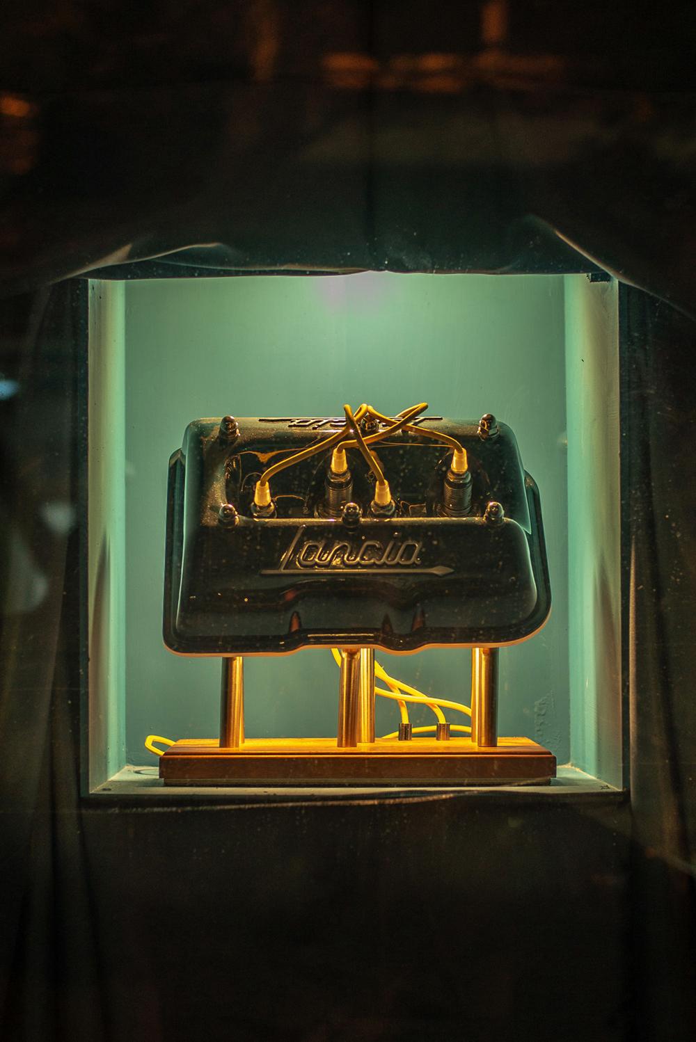 Στην παρουσίαση αυτή, μέρος της μηχανής V4 του Lancia Fulvia, που κυκλοφόρησε μεταξύ 1963 και 1976, συνοψίζεται το σχέδιο του συνόλου του αυτοκινήτου, με τις στρογγυλεμένες καμπύλες, το ιδιαίτερο μεταλλικό μπλε χρώμα (το Mendoza Blue) και τη μάρκα. Το ίδιο συμβαίνει με τα καλύμματα των βαλβίδων μίας μηχανής BMW και με το κάλυμμα της μηχανής ενός Maserati Biturbo, κινητήρα που παρήχθη μεταξύ 1981 και 1994).