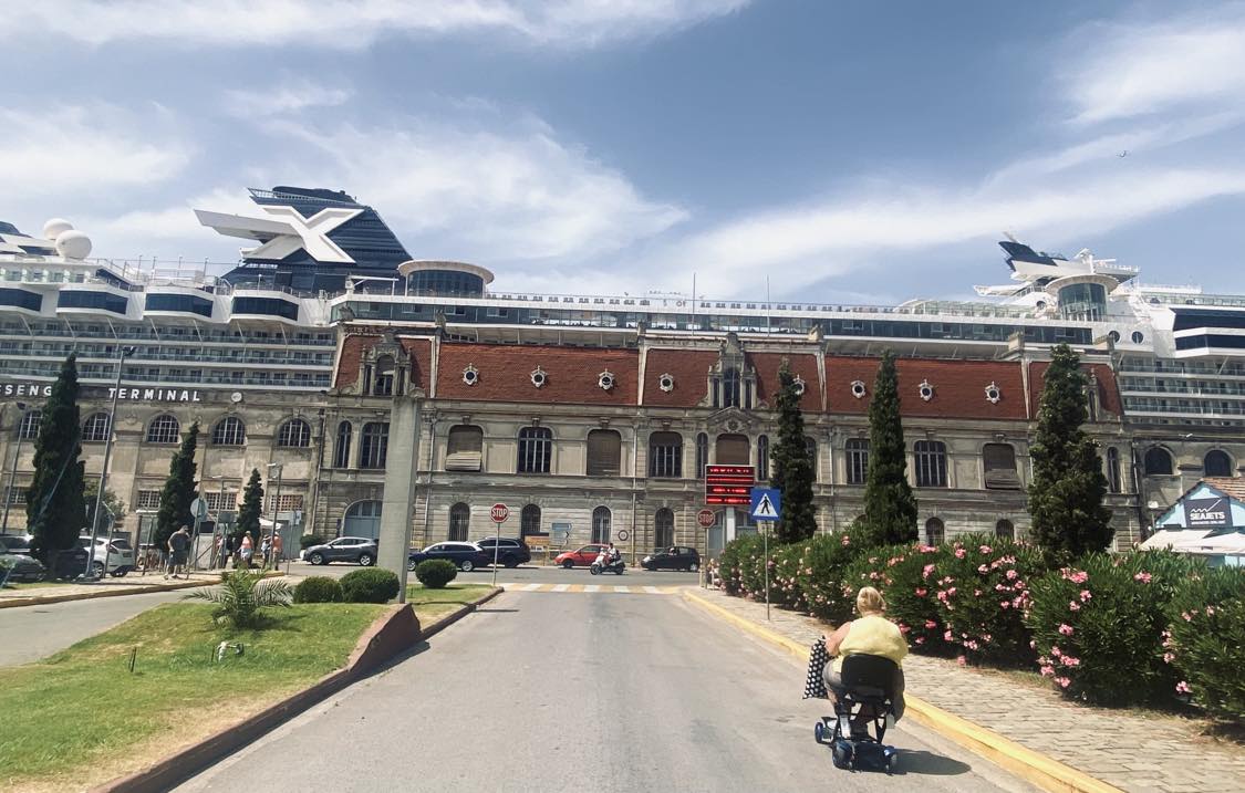 Κάθισα σε μια σκιά και κοίταζα τους δυο όγκους. Το εντυπωσιακό, στα μέτρα του ανθρώπινου νου όμως όγκο του κτιρίου και πλάι του να υψώνεται απειλητικά το θεριό της τουριστικής αμετροέπειας. Περπάτησα κάμποσο μέσα στο λιμάνι, έφτασα στην είσοδο του, κοίταζα τον τρόπο που υψώνονταν το πλοίο πάνω από το κτίριο, σαν να το κατάπινε και σκεφτόμουν πώς από την πλευρά της θάλασσας, η πόλη, με το παλιό της αποτύπωμα σε αυτό το σημείο απλά δεν υφίστατο. Είχε σβήσει πίσω από το μέγεθος του.