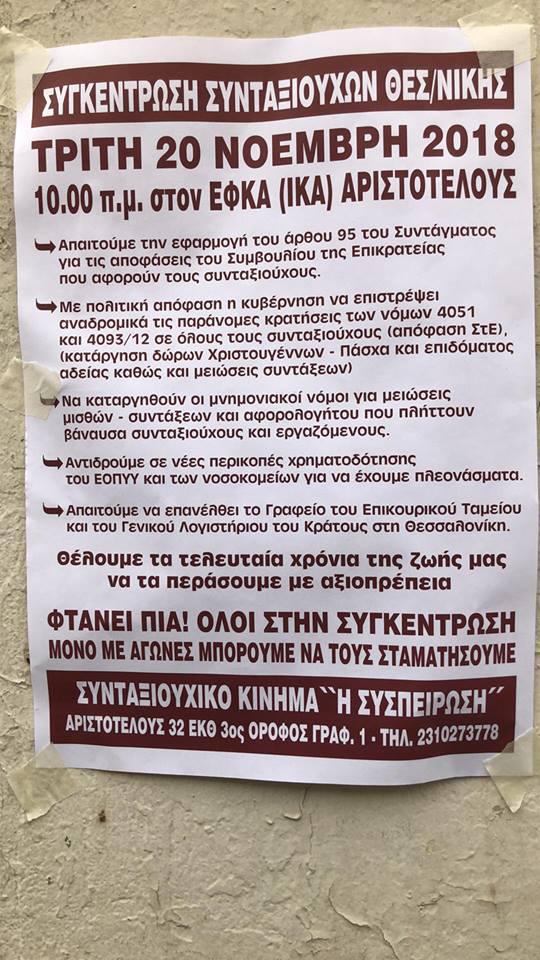 Συγκέντρωση διαμαρτυρίας πραγματοποιούν αυτή την ώρα συνταξιούχοι έξω από το ΙΚΑ Αριστοτέλους. Διαμαρτύρονται κατά την περικοπή συντάξεων, τα αναδρομικά κα.