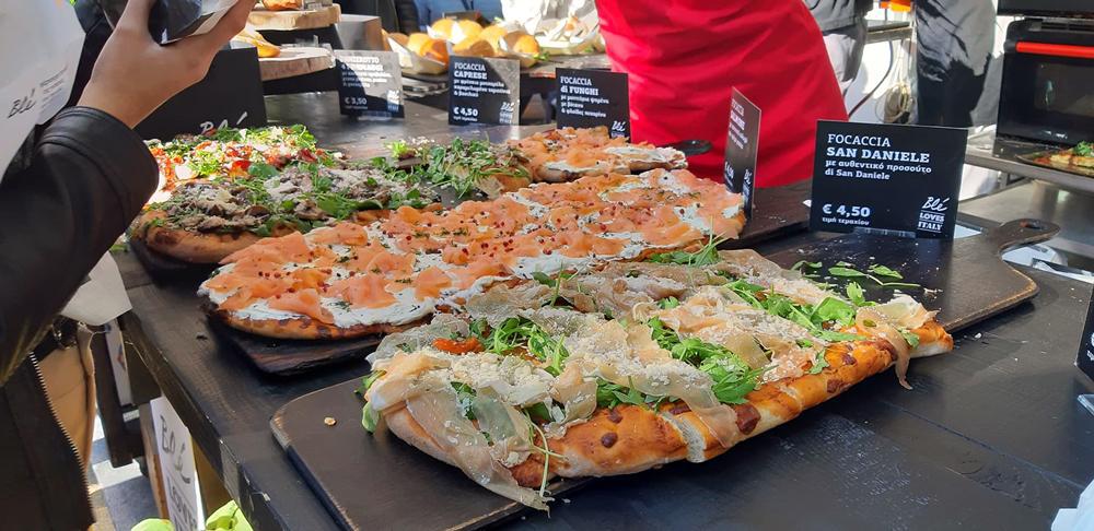 Στο διήμερο αυτό έχει στηθεί ένα street food party με γευστικές προτάσεις, άφθονο κρασί, μπύρα και aperol-spritz, γνήσιες ιταλικές πίτσες με ντομάτα και mozzarella, φρέσκα ζυμαρικά, risotto, τραγανά arancini, γεμιστά panzerotti, λεπτή πίτα piadina με αλλαντικά, ιταλικά burger, παραδοσιακά ιταλικά αλλαντικά- porchetta και mortadella, καφές espresso. Το βράδυ του Σαββάτου θα πραγματοποιηθεί, στον χώρο της εκδήλωσης και σε διαμορφωμένο πάλκο, συναυλία (από τις 21.00) με τις πιο γνωστές ιταλικές επιτυχίες από τη δεκαετία του ’60 έως και σήμερα.