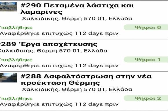 “Ιδιαίτερα σημαντική στην προσπάθεια είναι η συμβολή του Ινστιτούτου Τεχνολογιών Πληροφορικής & Επικοινωνιών (ΙΠΤΗΛ) του Εθνικού Κέντρου Έρευνας και Τεχνολογικής Ανάπτυξης (ΕΚΕΤΑ) το οποίο ανέπτυξε μια έκδοση της εφαρμογής για κινητά τηλέφωνα, ώστε οι πολίτες να μπορούν να αποστέλλουν τα αιτήματά τους πιο άμεσα. Η εφαρμογή χρησιμοποιεί τις δυνατότητες των έξυπνων συσκευών όπως την αυτόματη εξαγωγή της γεωγραφικής θέσης και τη χρήση της κάμερας για την αποστολή φωτογραφιών. Είναι διαθέσιμη για κινητά τηλέφωνα με λειτουργικό σύστημα Android μέσω της πλατφόρμας εφαρμογών για κινητά τηλέφωνα GooglePlay, της σχετικής σελίδας του Δήμου Θέρμης, καθώς και της σχετικής σελίδας του Ινστιτούτου Τεχνολογιών Πληροφορικής & Επικοινωνιών.“