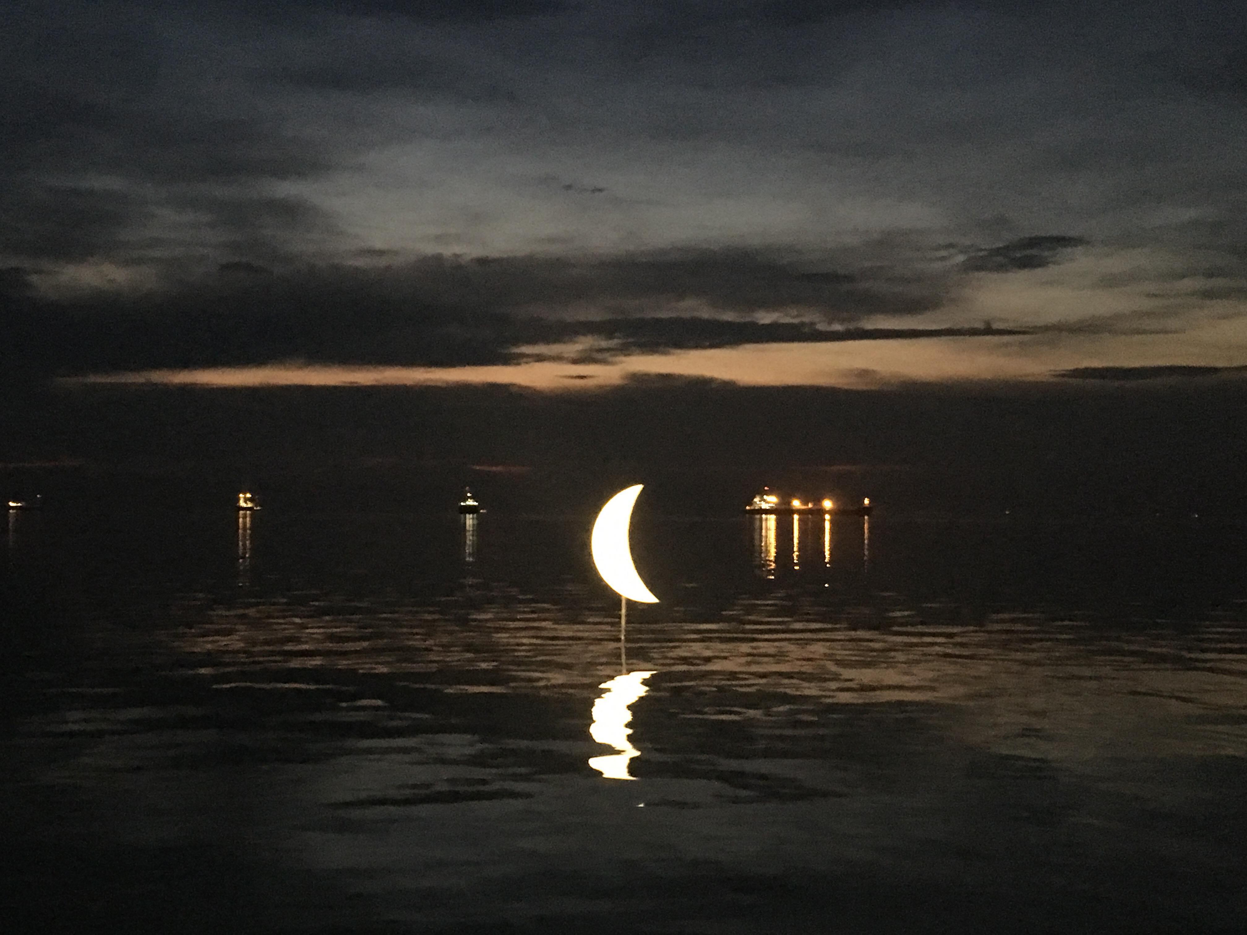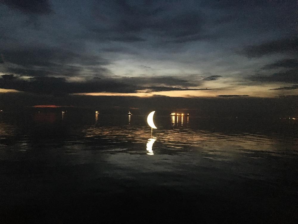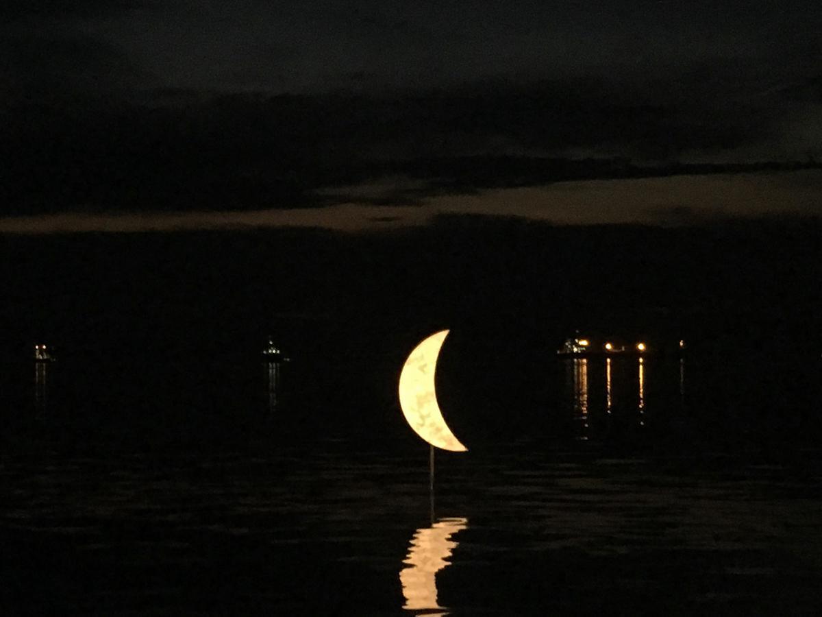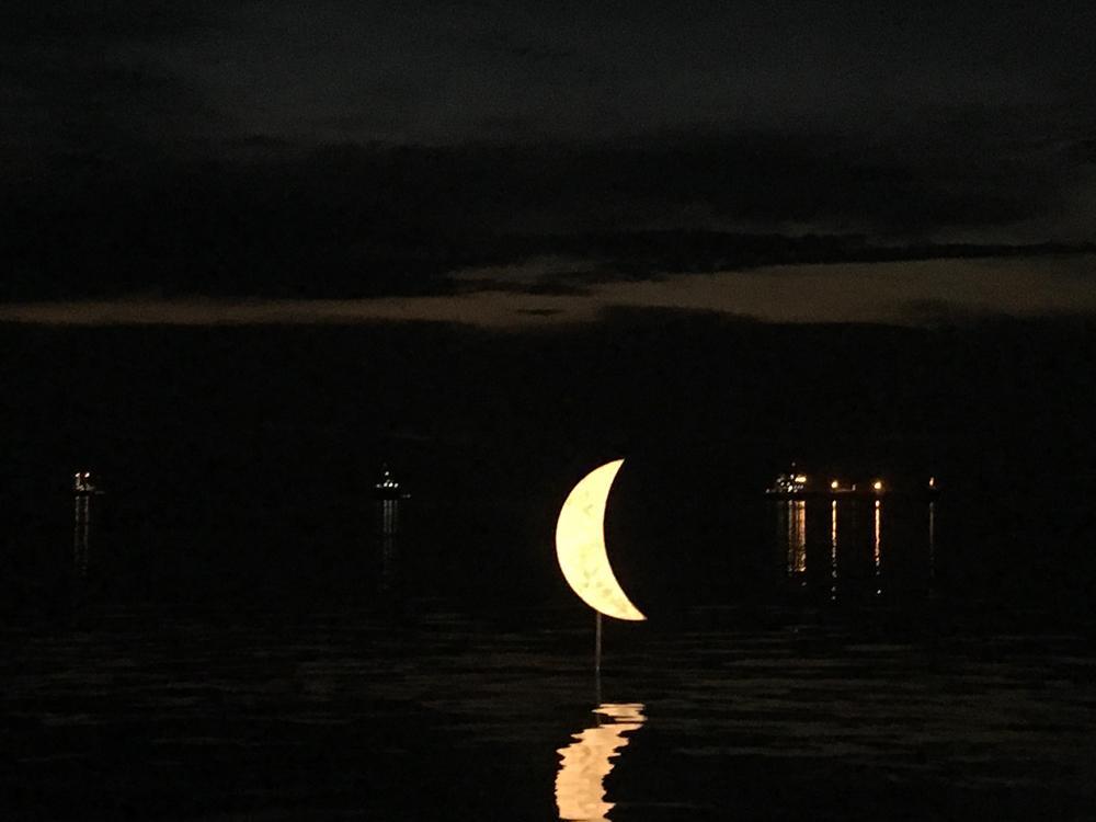 Ολοκληρώθηκε πριν λίγη μόλις ώρα η τελετή φωταγώγησης του “Φεγγαριού” του Παύλου Βασιλειάδη στον Θερμαϊκό, όπου πήρε για άλλη μια φορά την δικαιωματική του θέση!
