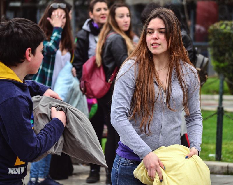 Κατάλευκο βαμβάκι και πούπουλα σκόρπισαν στο πλακόστρωτο της Πλατείας Αριστοτέλους ανάμεσα σε φωνές και γέλια παιδιώ και νέων κυρίως που γλέντησαν το αγαπημένο τους σπορ εκτός της κρεβατοκάμαρας. Λόγος για να χαμογελάς μέσα στην μουντάδα της μέρας που δεν μας έκανε τη χάρη να καθαρίσει.