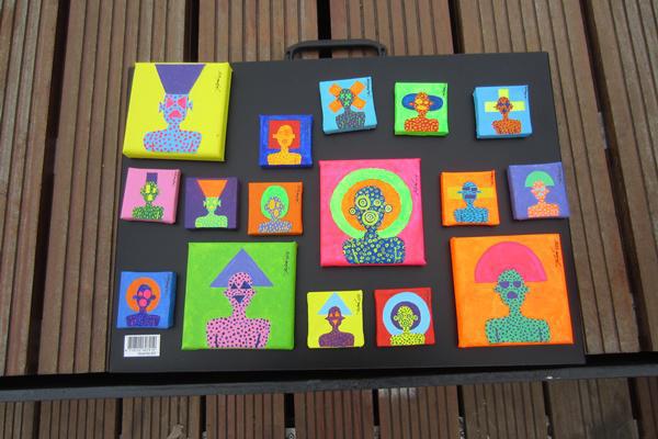 Πρώτα είδα τα μικρά έργα του Γιώργου με τα έντονα χρώματα και επειδή μου θύμισαν έντονα Αφρική, σήκωσα το κεφάλι και περίμενα να αντικρύσω έναν Αφρικανό. Ξαφνιάστηκα όταν είδα το Γιώργο.