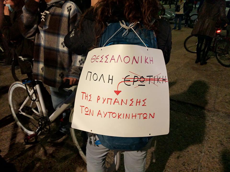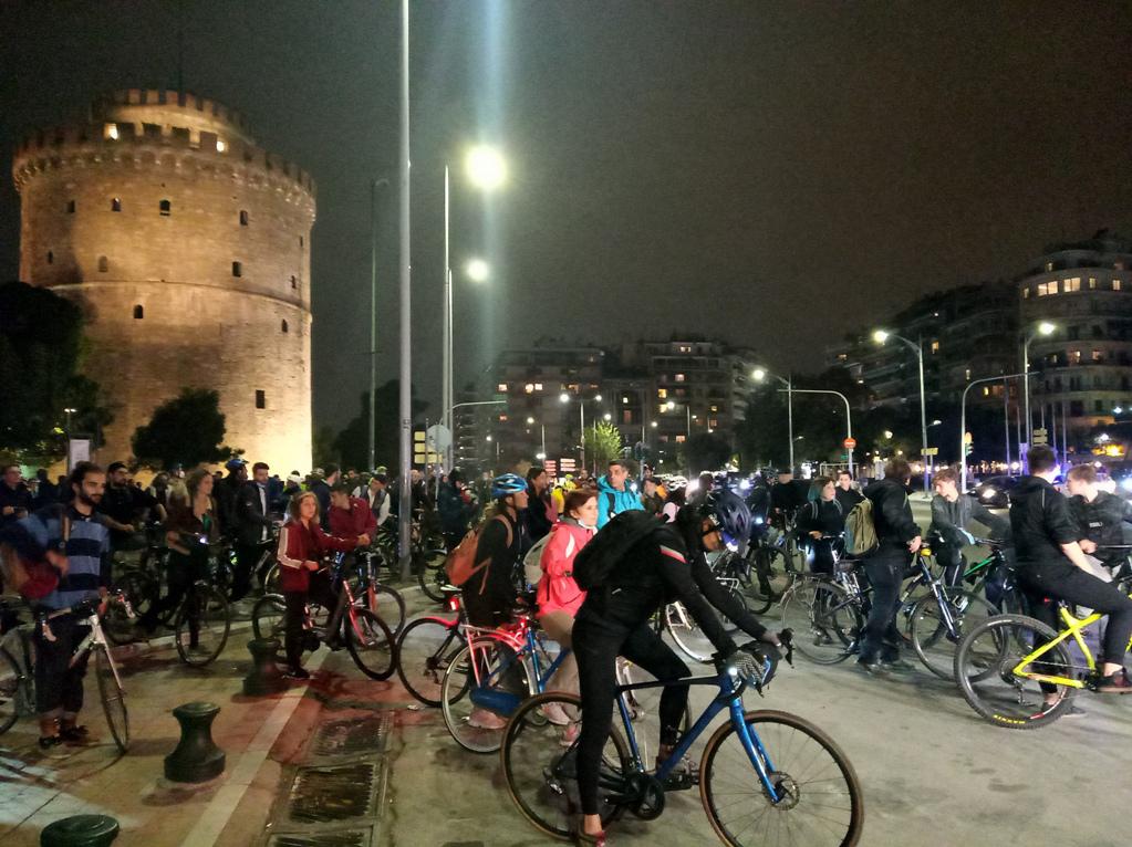 Οι ποδηλάτες συγκεντρώθηκαν γύρω στις 7μμ στον Λευκό Πύργο και μετά από ομιλίες και ενημέρωση από εκπροσώπους ποδηλατικών συλλόγων, ξεκίνησαν ποδηλατοπορεία μέσω της παραλιακής προς το δημαρχείο Θεσσαλονίκης, όπου πραγματοποίησαν συμβολική στάση διαμαρτυρίας.