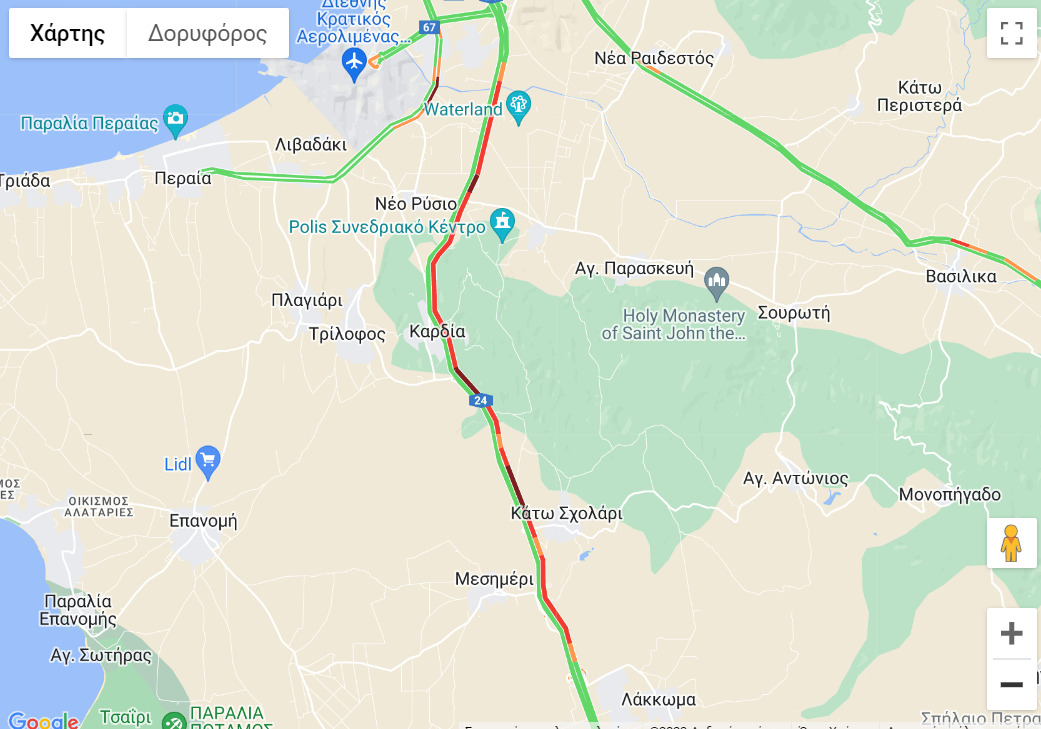 Παράλληλα, τα οχήματα κινούνται με αργούς ρυθμούς και από την άλλη πλευρά της πόλης και στα διόδια Μαλγάρων έχουν σχηματιστεί τεράστιες ουρές αυτοκινήτων.