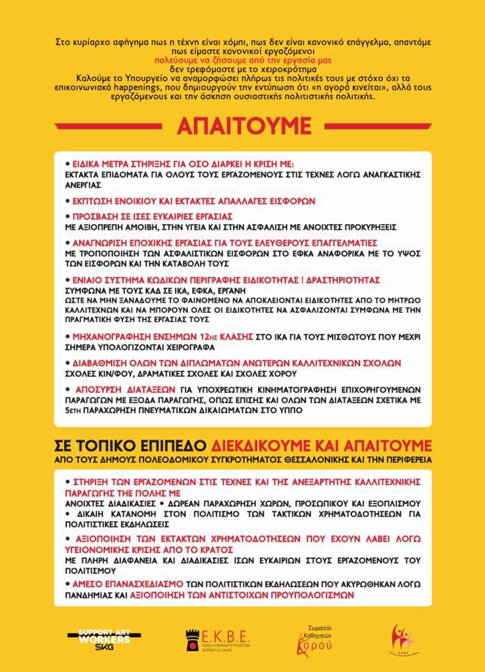 Το Κρουστόφωνο, μια σπουδαία μουσική κολεκτίβα της πόλης, βγήκε πάλι μπροστά σήμερα, σε μια ακόμα διαμαρτυρία για την κατάσταση στο χώρο του πολιτισμού.