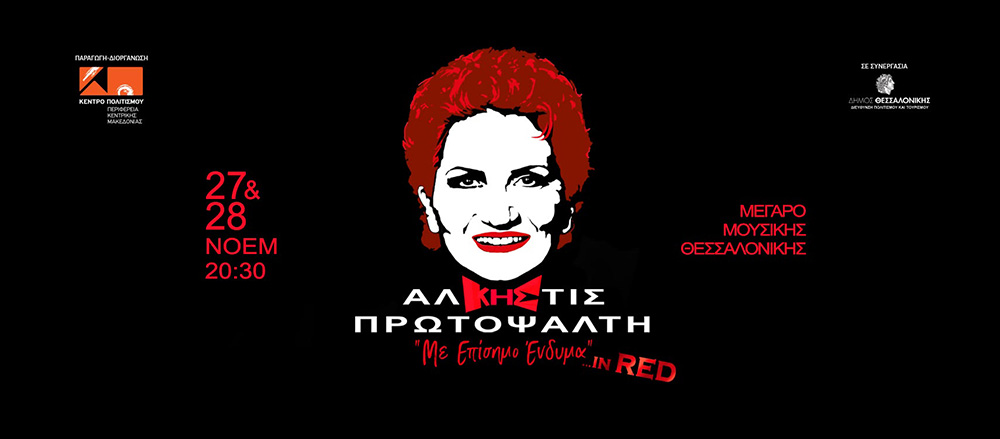 Το Κέντρο Πολιτισμού Περιφέρειας Κεντρικής Μακεδονίας παρουσιάζει τη σπουδαία ερμηνεύτρια Άλκηστη Πρωτοψάλτη, στις 27 & 28 Νοεμβρίου, στο Μέγαρο Μουσικής Θεσσαλονίκης, με τη συνοδεία της Συμφωνικής Ορχήστρας Δήμου Θεσσαλονίκης, σε μια διπλή, μουσική γιορτή In Red. Η πρωτότυπη καλλιτεχνική πρόταση «Επίσημο Ένδυμα», που ξεκίνησε το 2019, παντρεύει τη συμφωνική ορχήστρα με κορυφαίους εκπροσώπους της έντεχνης και rock σκηνής, αναδεικνύοντας το προσωπικό τους αποτύπωμα, μέσα από τη μαγεία του συμφωνικού ήχου. Το πρώτο «Επίσημο Ένδυμα» παρουσιάστηκε τον Οκτώβριο του 2019 με τον Σταμάτη Κραουνάκη. Ακολούθησαν οι επιτυχημένες εμφανίσεις του Πάνου Μουζουράκη (2021), του Νίκου Πορτοκάλογλου (2022), του Αλκίνοου Ιωαννίδη (2023) και του Μίλτου Πασχαλίδη (2024). Φέτος, το «Επίσημο Ένδυμα» θα φορέσει η Άλκηστις Πρωτοψάλτη, η οποία ανεβαίνει στη σκηνή ως η πρώτη κυρία του θεσμού. Με επίσημη τουαλέτα, συμφωνικούς ήχους και τραγούδια που άφησαν εποχή, θα ντύσει δύο μοναδικές βραδιές με πάθος, λάμψη και συγκίνηση – στο χρώμα του κόκκινου. Το Μέγαρο Μουσικής Θεσσαλονίκης θα ντυθεί και αυτό στα κόκκινα δημιουργώντας την ατμόσφαιρα μιας μεγάλης γιορτής. Με καριέρα που ξεπερνά τις πέντε δεκαετίες, εμφανίσεις σε κορυφαίες σκηνές στην Ελλάδα και το εξωτερικό, αλλά και συνεργασίες με σημαντικές ορχήστρες, η Άλκηστις Πρωτοψάλτη έρχεται να ενώσει τη φωνή της με τη Συμφωνική Ορχήστρα του Δήμου Θεσσαλονίκης, σε μια σύμπραξη που υπόσχεται να μείνει αξέχαστη. Το πρόγραμμα περιλαμβάνει αγαπημένα τραγούδια που σημάδεψαν την πορεία της και αγαπήθηκαν από γενιές ακροατών, παρουσιασμένα μέσα από νέες, συμφωνικές ενορχηστρώσεις που αναδεικνύουν τη δύναμη και την ευαισθησία της φωνής της. Θα ξεδιπλώσουμε το καλλιτεχνικό της αποτύπωμα μέσα από φωτογραφίες, βίντεο και πολλές εκπλήξεις, προσκαλώντας το κοινό να ζήσει μια μοναδική, εμπειρία Δύο βραδιές, χιλιάδες στιγμές μουσικής μαγείας, όλες …. In Red. Σας καλούμε να γίνετε κι εσείς μέρος αυτής της γιορτής φέρνοντας μαζί σας μια πινελιά από κάτι κόκκινο∙ ένα μαντήλι, ένα παπιγιόν, ένα αξεσουάρ και ελάτε να υφάνουμε όλοι μαζί το λαμπερό κόκκινο σκηνικό της βραδιάς. Συντελεστές Ερμηνεία: Άλκηστις Πρωτοψάλτη Συμφωνική Ορχήστρα Δήμου Θεσσαλονίκης Διεύθυνση ορχήστρας: Κωνσταντίνος Δημηνάκης Ερμηνεία: Άλκηστις Πρωτοψάλτη Μικτή Χορωδία Θεσσαλονίκης Μουσική προετοιμασία χορωδίας: Άννα Γεράση Διεύθυνση χορωδίας: Μαίρη Κωνσταντινίδου Σκηνοθετική – σκηνογραφική επιμέλεια: Αθανάσιος Κολαλάς Συμμετέχει: Κωνσταντίνος Καΐκής Ενορχηστρώσεις: Πάνος Κοσμίδης, Κωνσταντίνος Δημηνάκης Παραγωγή – Διοργάνωση Κέντρο Πολιτισμού Περιφέρειας Κεντρικής Μακεδονίας Σε συνεργασία με τη Διεύθυνση Δημοτικών Μουσικών Σχημάτων και Καλλιτεχνικής Εκπαίδευσης του Δήμου Θεσσαλονίκης και τον Οργανισμό Μεγάρου Μουσικής Θεσσαλονίκης Συντονισμός: Τώνια Δραγούνη