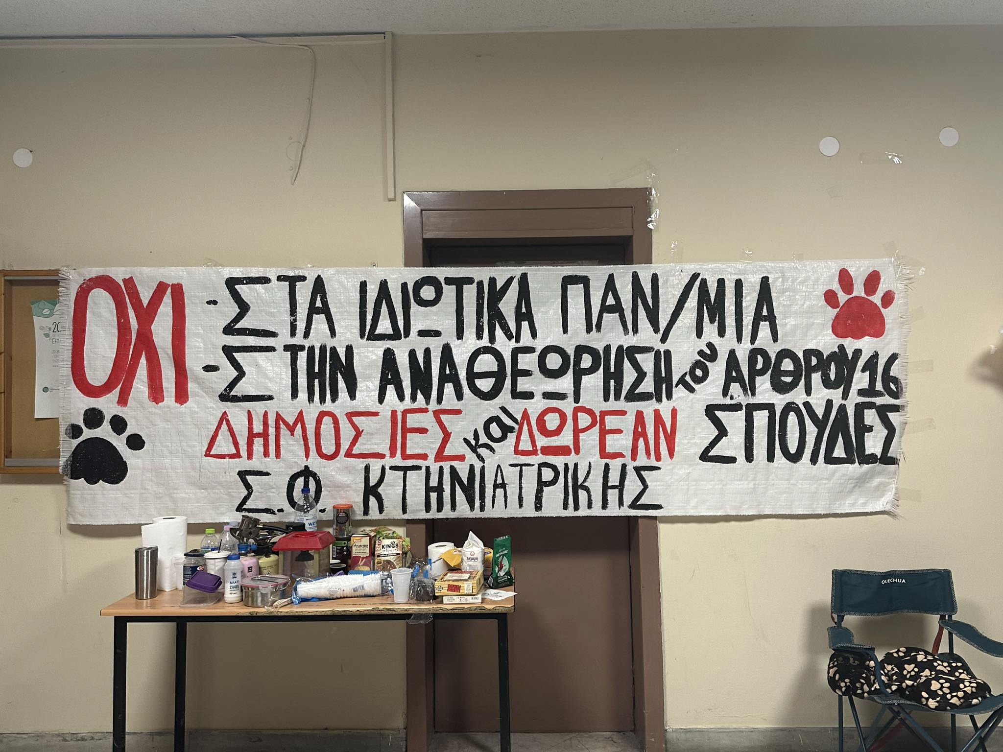 Φοιτητές της κατειλημμένης Κτηνιατρικής μιλούν στην Parallaxi για το άρθρο 16, το νομοσχέδιο Πιερρακάκη και την αξία της δημόσιας και δωρεάν Παιδείας.