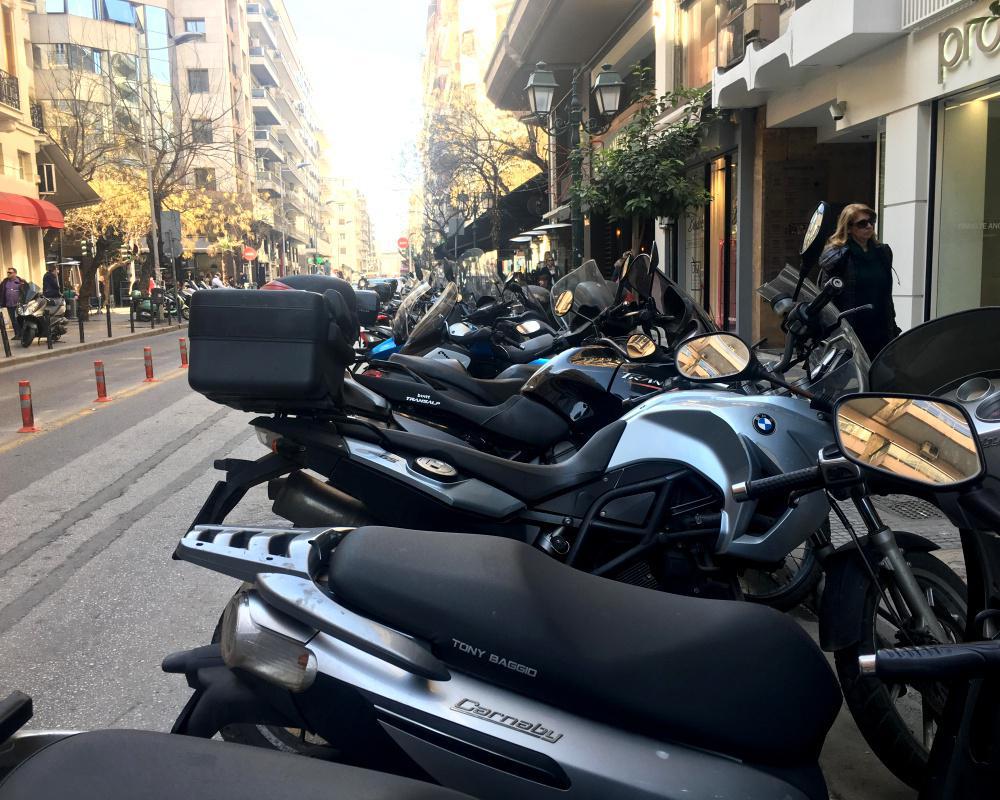Στην οδό Μητροπόλεως, μετά από καταμέτρηση της Parallaxi, υπήρξαν τουλάχιστον 288 παράνομα σταθμευμένα μηχανάκια (σε μία μόλις καθημερινή μέρα!), είτε στον δρόμο είτε πάνω στο πεζοδρόμιο, κάτι που έχει γίνει συνήθεια τα τελευταία χρόνια για τους κατοίκους της ομώνυμης περιοχής. Με τα μηχανάκια των παρακείμενων οδών, αυτός ο αριθμός ξεπέρασε τα 500.