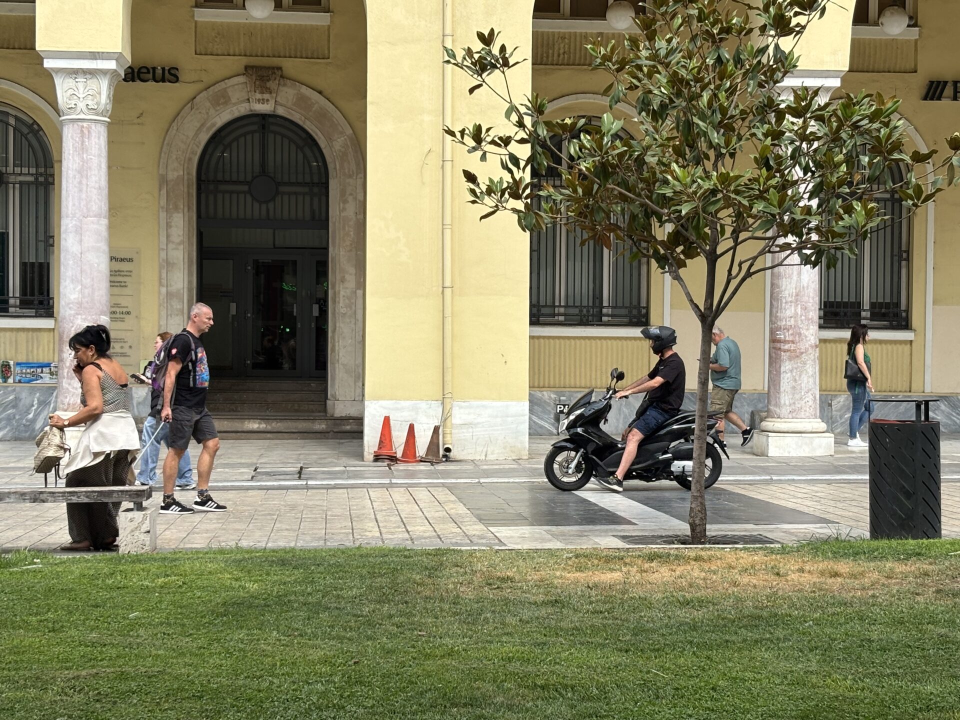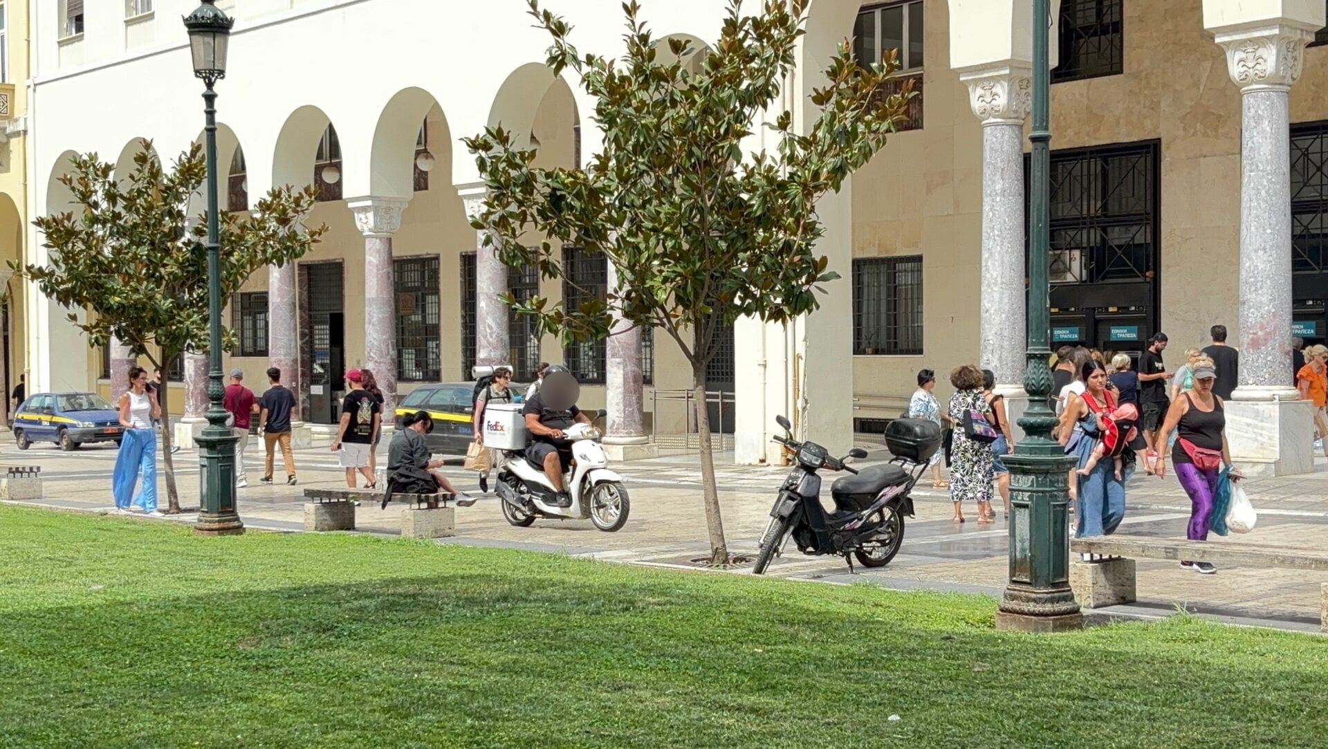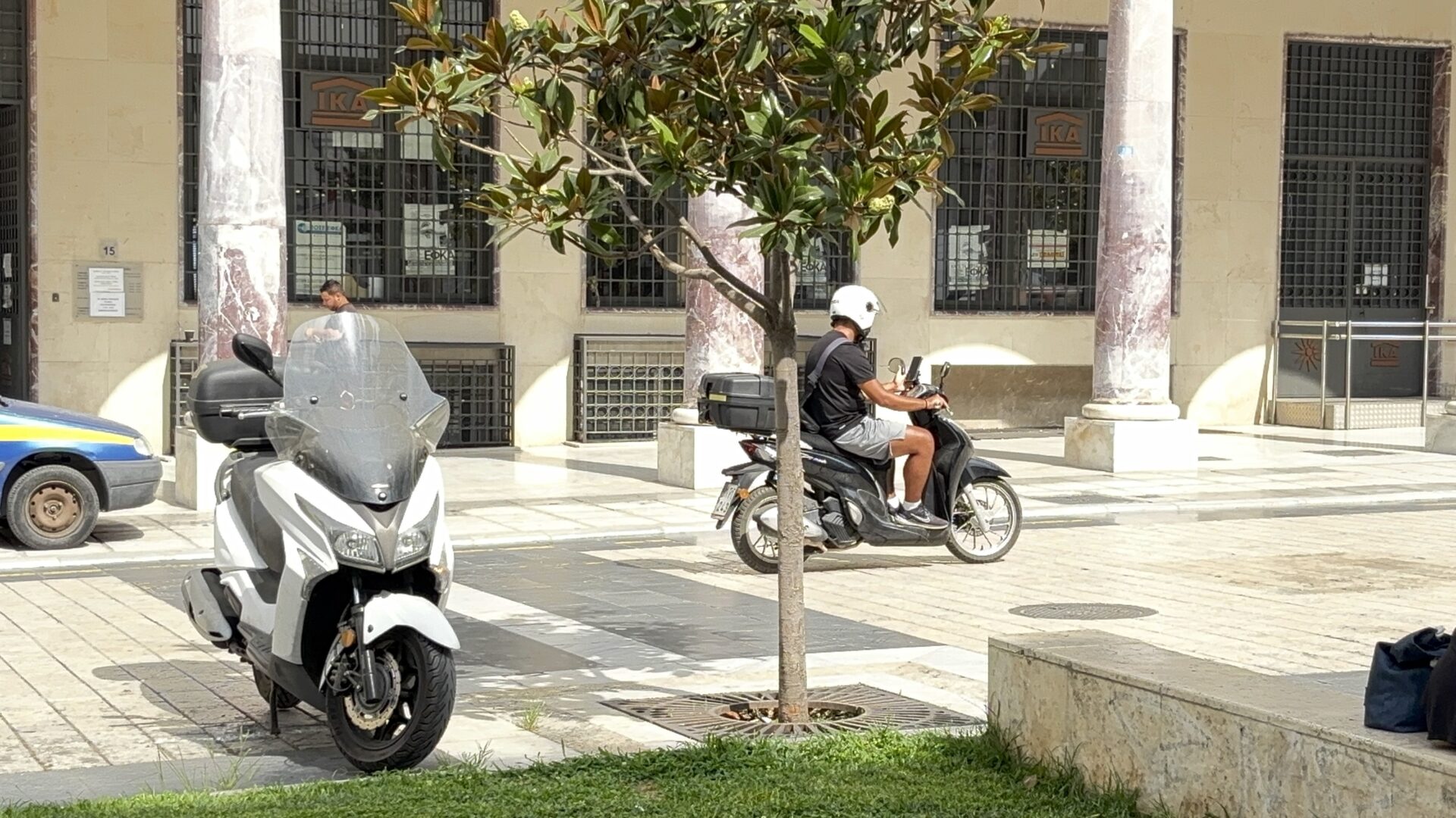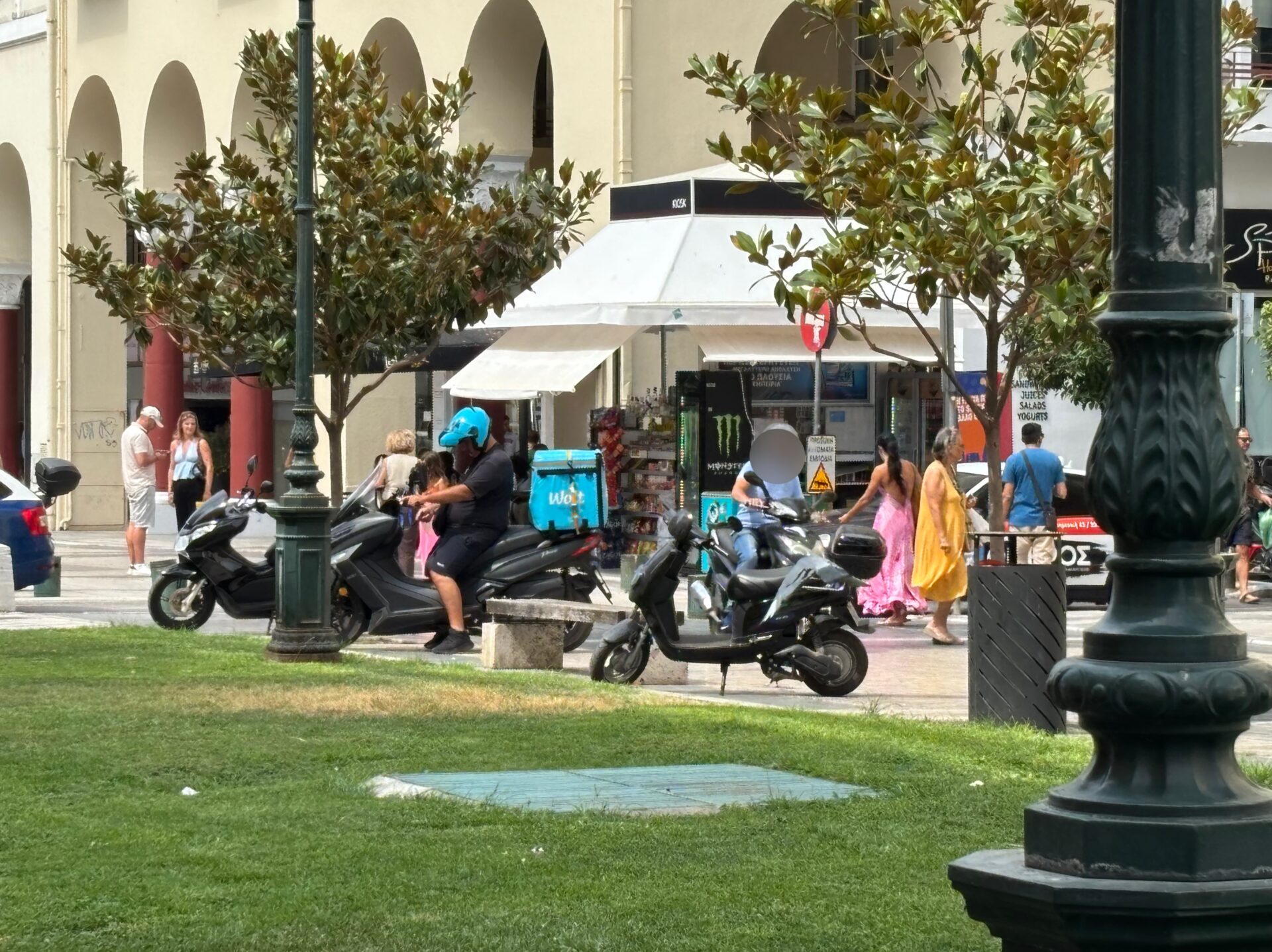 Αποφασίσαμε να κάτσουμε για μισή ώρα στην πλατεία και να καταγράψουμε την κίνηση, να μετρήσουμε τα μηχανάκια και στη συνέχεια βέβαια να μιλήσουμε με αρμόδιους φορείς, υπαλλήλους καταστημάτων, περαστικούς, αλλά και οδηγούς γιατί συμβαίνει αυτί. Και όλοι — από διαφορετική σκοπιά — είχαν κάτι να πουν.