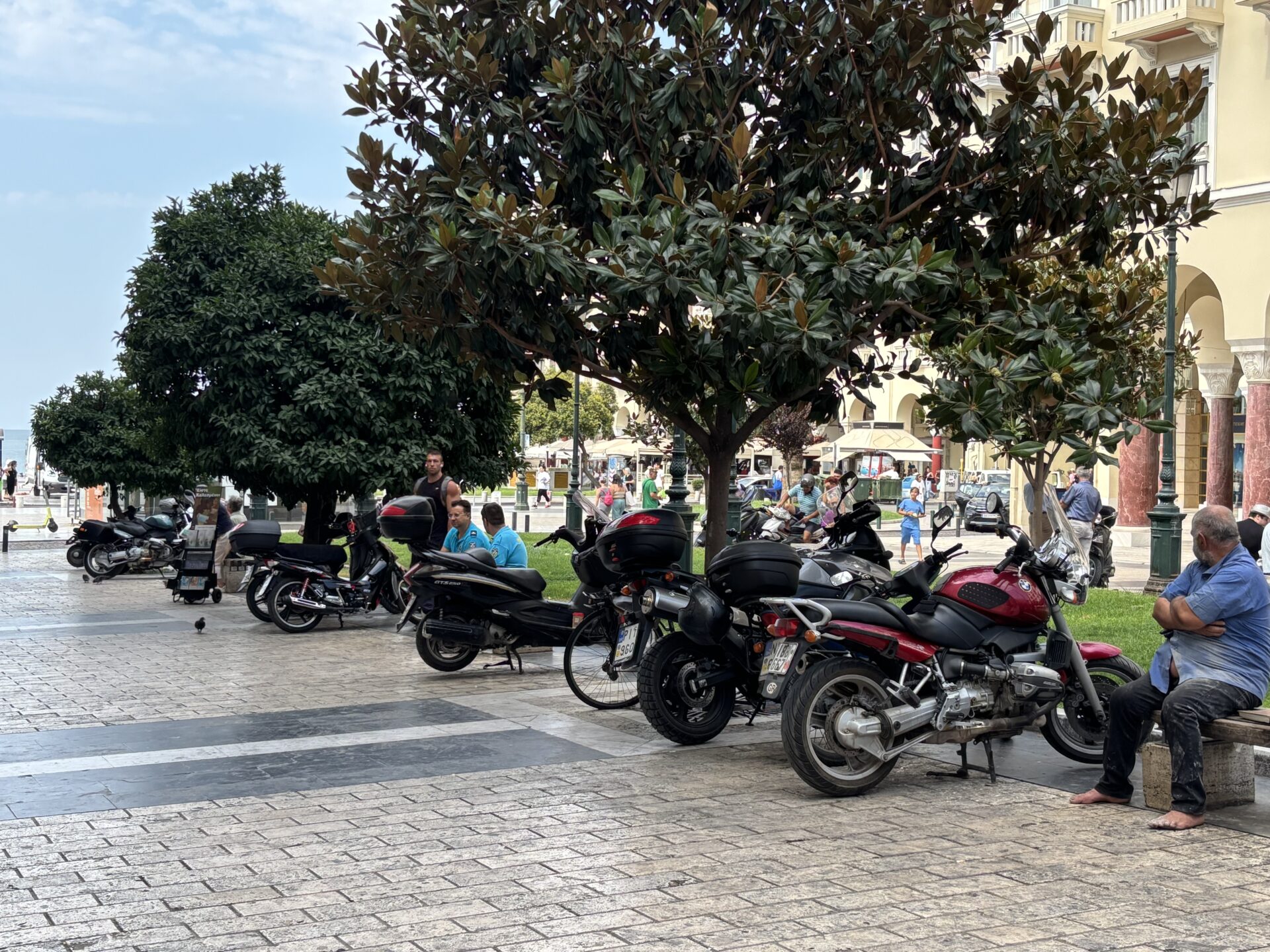 Δίπλα από παγκάκια, στις άκρες του πεζόδρομου, ανάμεσα σε τραπεζοκαθίσματα. Στο ύψος της Αριστοτέλους με Μητροπόλεως, συχνά βλέπει κανείς σειρές μηχανών να έχουν καταλάβει όλο το πλάτος του δρόμου, κάνοντάς τον πρακτικά δύσκολα προσπελάσιμο ή απροσπέλαστο για πεζούς.