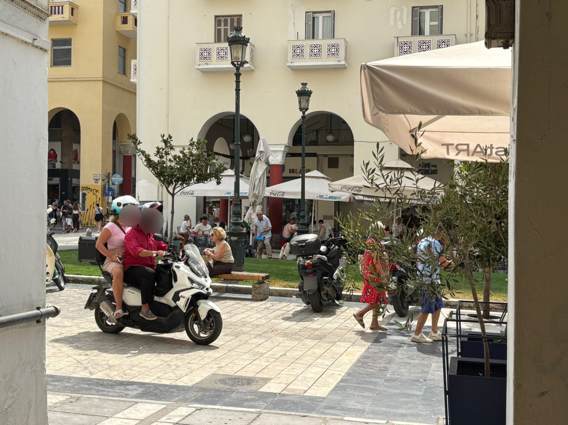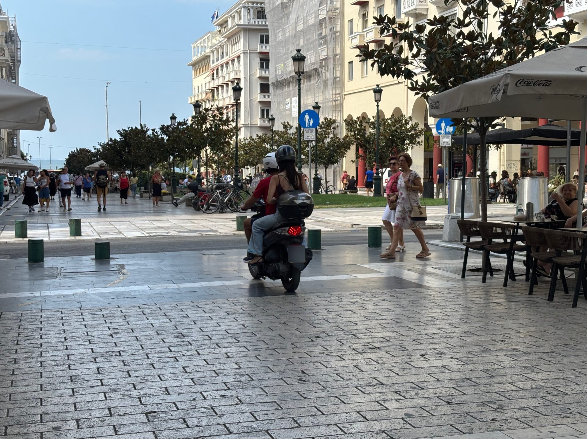 «Η κατάσταση είναι τραγική. Μονίμως τα μηχανάκια διαπερνούν και ενδιάμεσα από τα τραπεζοκαθίσματα, αυτό είναι πολύ επικίνδυνο. Τα μηχανάκια εξαφανίζονται μονάχα όταν κυκλοφορεί η τροχαία ή η δημοτική αστυνομία και τους γράφει. Με το που φύγουν όμως αυτοί τα μηχανάκια κατευθείαν ξανά βγαίνουν στον δρόμο… Η αλήθεια είναι πως είναι καθημερινό το φαινόμενο αυτό και είναι άκρως επικίνδυνο για τους πεζούς που απλώς απολαμβάνουν την βόλτα τους!».