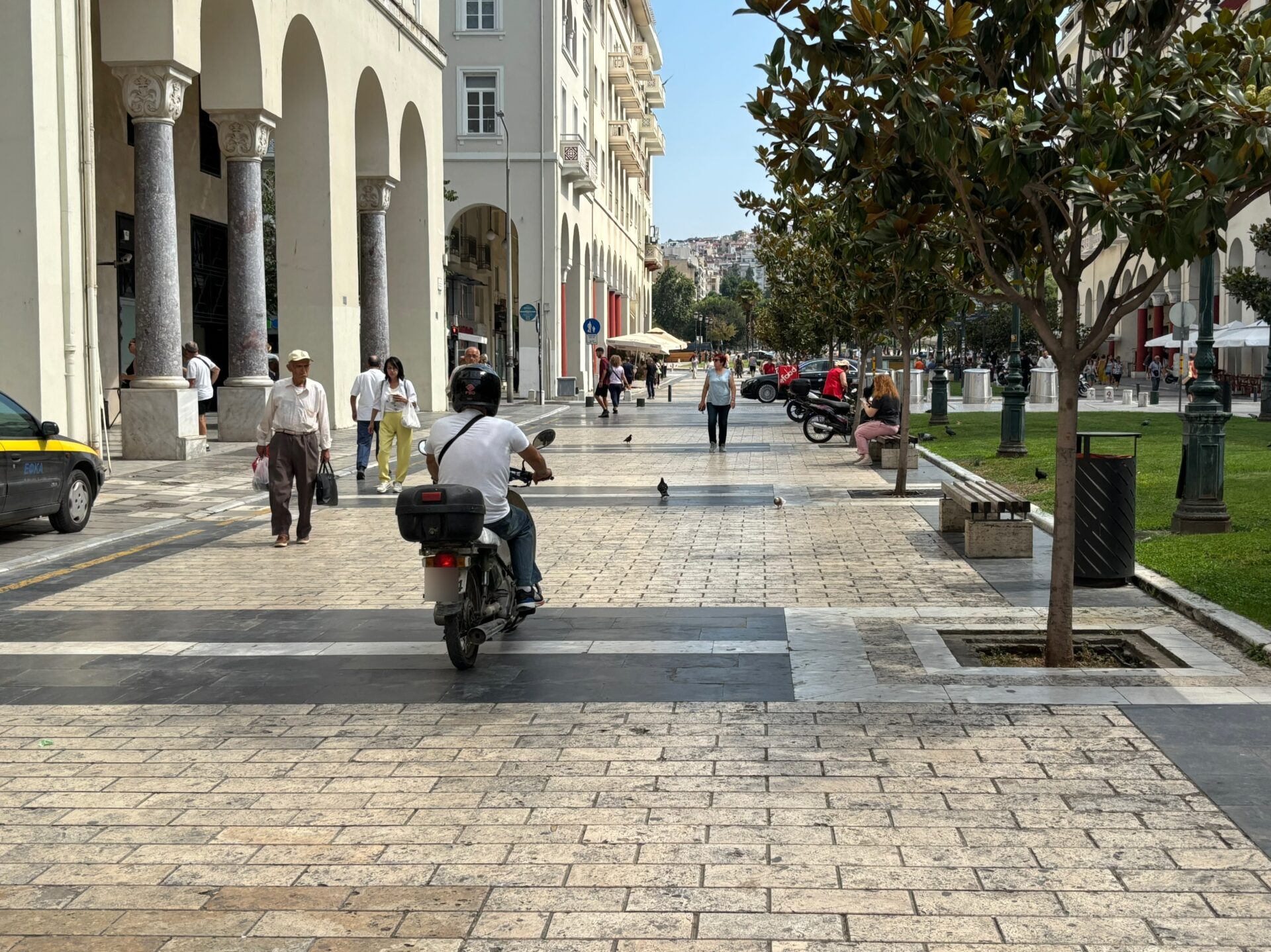Πολλοί είναι οι οδηγοί δίκυκλων που θεωρούν αυτονόητο στη Θεσσαλονίκη, αλλά και σε άλλες πόλεις, πως μπορούν να διασχίζουν τους πεζόδρομους — και τα πεζοδρόμια — , ανεξαρτήτως αν επιτρέπεται ή όχι.