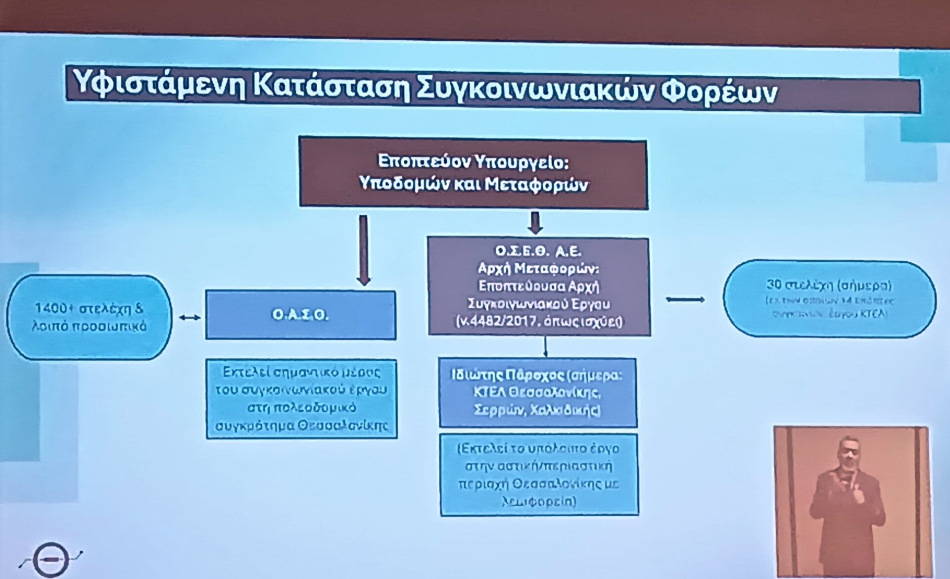Στην ημερίδα έγινα αναφορές και στο νέο ΟΑΣΘ, τον νέο οργανισμό που θα προκύψει και θα λειτουργεί υπό την εποπτεία του ΟΣΕΘ, ο οποίος αναλαμβάνει ρόλο ελεγκτή της ποιοτικής λειτουργίας των μέσων συγκοινωνίας στη Θεσσαλονίκη.