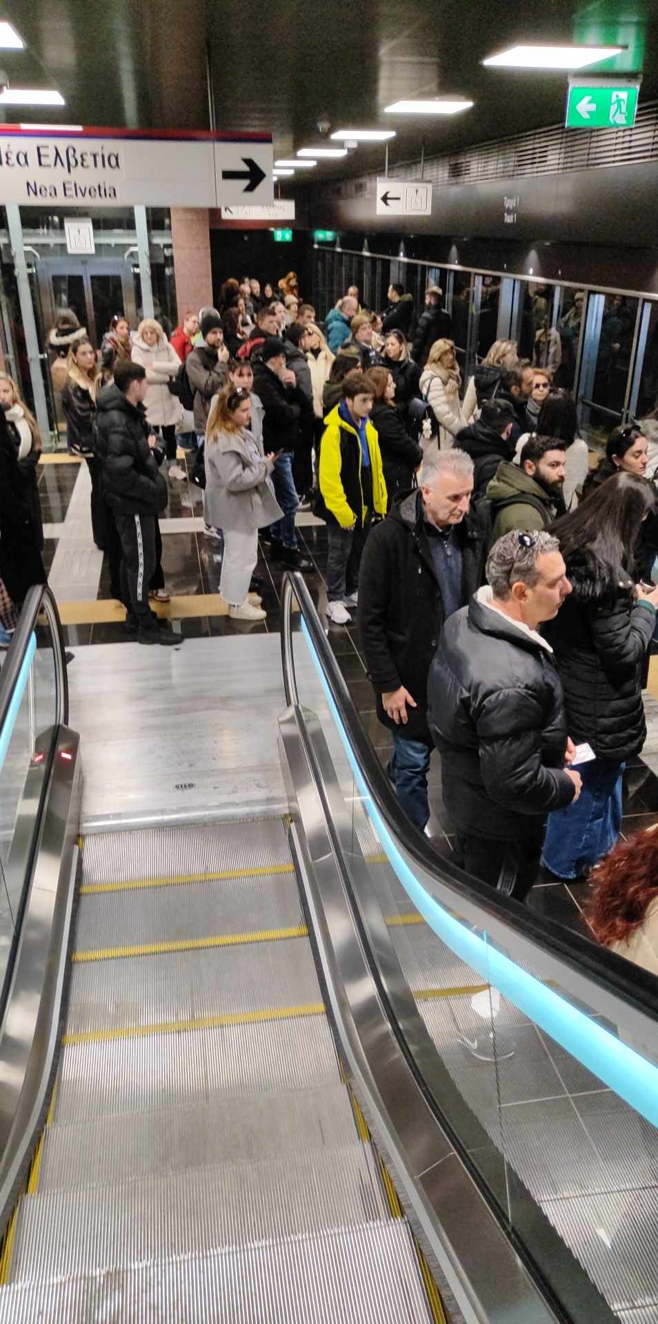 Μέχρι και νωρίς το απόγευμα (16:30), ο κόσμος παραμένει πολύς στις αποβάθρες. Σύμφωνα με πληροφορίες, οι συρμοί φεύγουν γεμάτοι από το σταθμό Δημοκρατίας και όταν φτάνουν στο Σιντριβάνι, οι επιβάτες που επιβιβάζονται στην άλλη τροχιά για να συνεχίσουν προς Νέα Ελβετία συνωστίζονται με τους επιβάτες που βρίσκονται ήδη συγκεντρωμένοι περιμένοντας κάποιο συρμό.