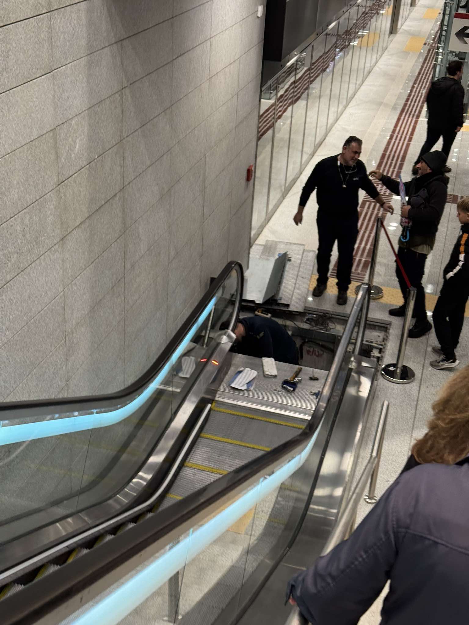 Επισκευές πραγματοποιούνται, λίγες ώρες μετά την έναρξη λειτουργίας του Μετρό Θεσσαλονίκης, σε κυλιόμενες σκάλες σε διάφορους σταθμούς.