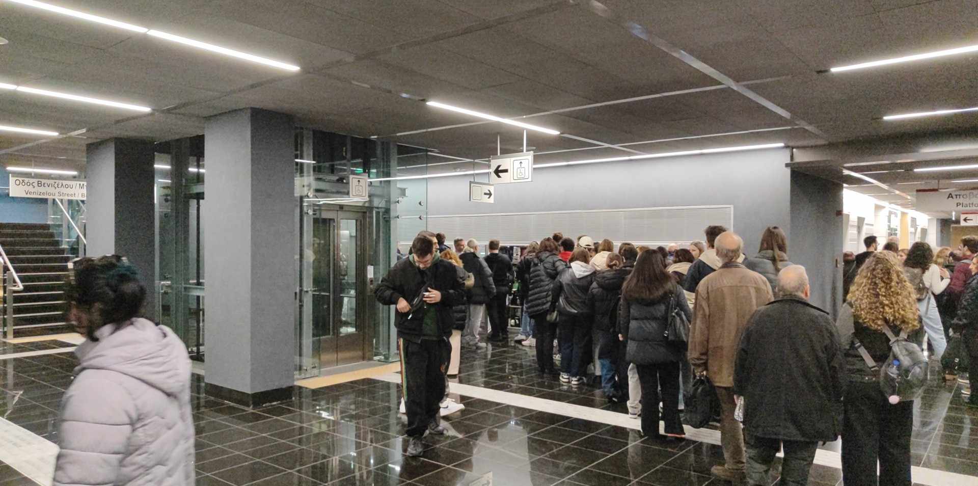Στη Βενιζέλου έχουν σχηματιστεί ουρές για την έκδοση καρτών, ενώ και σε αυτόν τον σταθμό μόνο τρία μηχανήματα έκδοσης εισιτηρίων λειτουργούν.
