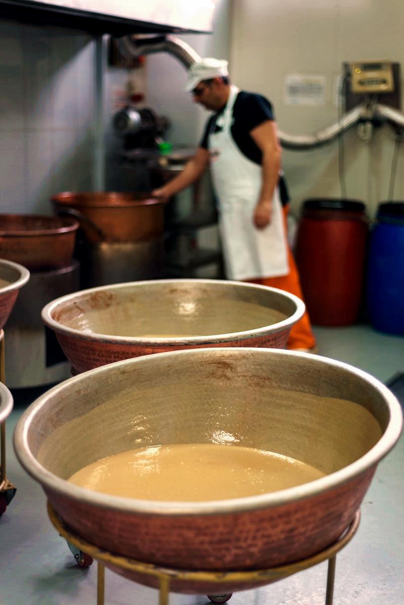 Μια τυπική μέρα στο εργαστήριό τους μοιάζει με παραμύθι. Όλα ξεκινούν με τη δημιουργία του σιροπιού, που θα ανακατευτεί για μιάμιση ώρα με την καραμέλα στον μεγάλο ειδικό φούρνο. Εκεί θα προκύψει ένα πεντανόστιμο μείγμα που στα τούρκικα ονομάζεται Αγκντάς και αποτελεί μια μοναδική πρώτη ύλη για ό,τι θα ακολουθήσει. Το λιώσιμο της καραμέλας αφήνει αρώματα θεϊκά που σου παίρνουν το μυαλό. Όση ώρα ετοιμάζεται η καραμέλα με το νερό και τη ζάχαρη, πλάι σε πέντε χάλκινα ειδικά σκεύη, βγαλμένα λες από παραμύθι του παλιού καιρού, ξεκουράζεται το ταχίνι, έχοντας βγάλει το λαδάκι του στην επιφάνεια. Εκλεκτό ταχίνι από το Σουδάν και την Αιθιοπία, πατρίδες του καλού σουσαμιού. Εκεί λοιπόν ο μαγικός σησαμοπολτός που παρασκευάζεται από αλεσμένους κόκκους εκλεκτού σουσαμιού, αναμένει με υπομονή την καραμέλα να παντρευτούν ιδανικά με τη βοήθεια των ειδικών μαστόρων.