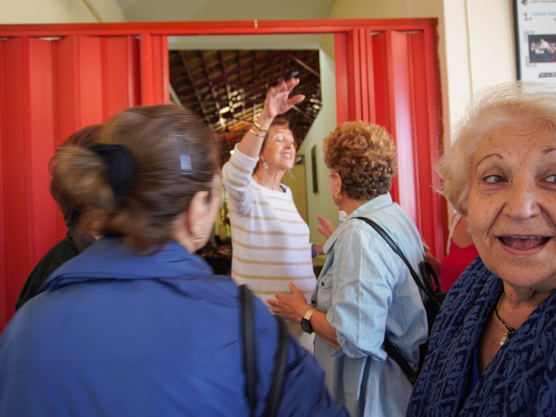 Μαζί του μας υποδέχεται η κυρία Βασιλική, μέλος. Σε λίγο έρχεται και η κυρία Αφροδίτη.