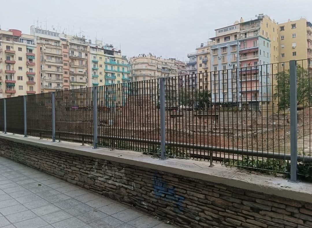 Η Εφορεία Αρχαιοτήτων Πόλεως Θεσσαλονίκης τοποθέτησε ψηλά μεταλλικά κιγκλιδώματα γύρω από τον αρχαιολογικό χώρο για λόγους προστασίας.