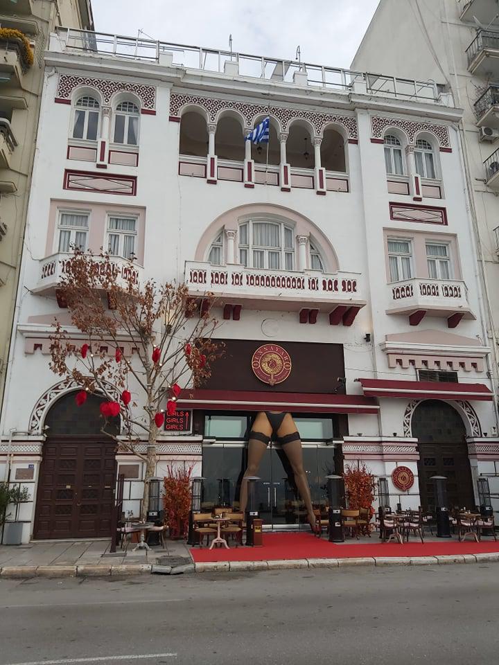 Ένα σεξιστικό ομοίωμα γυναικείων ποδιών με ζαρτιέρες και εσώρουχο κοσμεί την όψη του ιστορικού κτιρίου. Και επειδή προφανώς καμία αρμόδια αρχή δεν υπάρχει στην πόλη να κάνει συστάσεις για αυτό το θέαμα, και ούτε η ίδια η Λέσχη κάνει κάτι για να προστατεύσει την εικόνα του, η κατάσταση θα διαιωνίζεται…