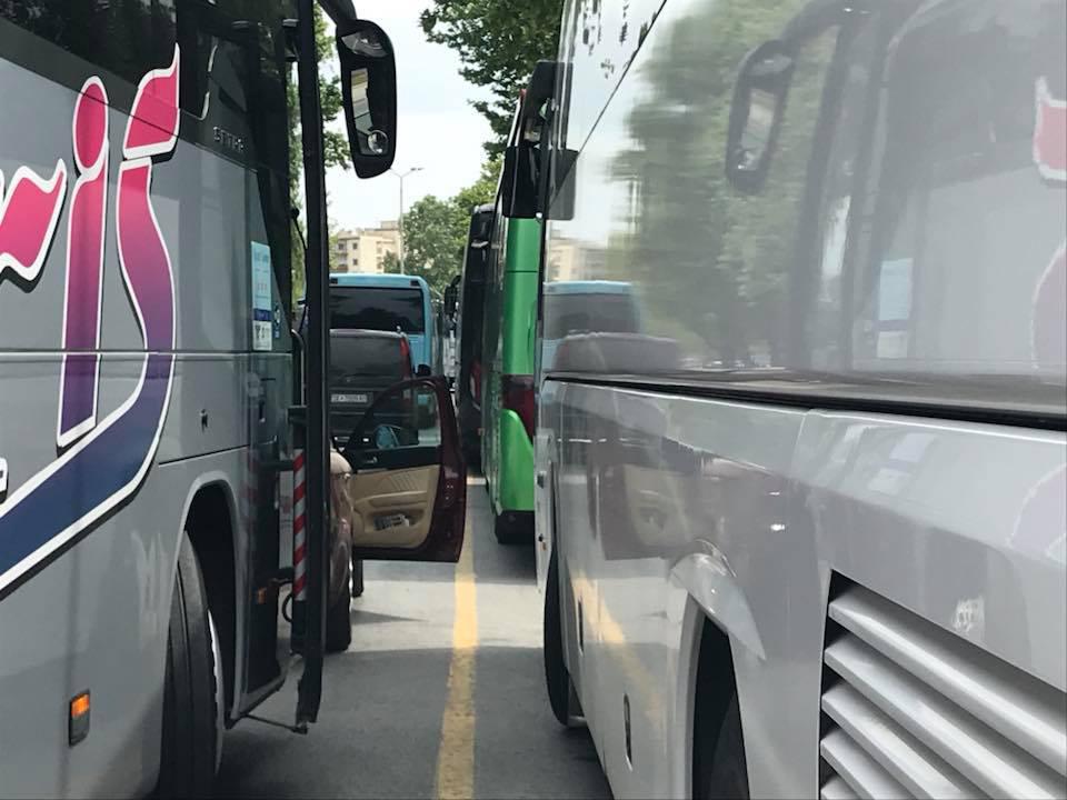 Διπλο-τριπλοπαρκαρισμενα πούλμαν, κάτω ακριβώς από πινακίδα που έγραφε με μεγάλα και ευδιάκριτα γράμματα ”πλην τουριστικών λεωφορείων ΓΙΑ ΟΛΙΓΟΛΕΠΤΗ ΣΤΑΣΗ” με ένα μεγαλοπρεπές κόκκινο Χ στη μέση. Δεν είναι εικόνα που μπορεί να μας κάνει υπερήφανους για την πόλη μας.