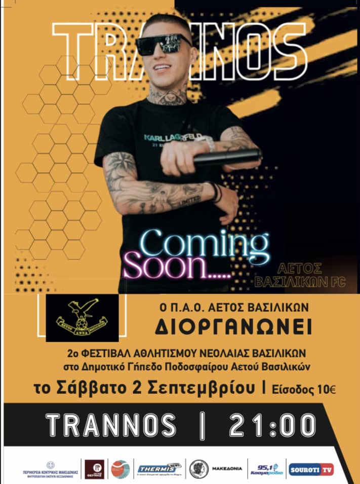Μια συναυλία, με έντονο παρασκήνιο και αρκετές αντεγκλήσεις, και τη συμμετοχή του ράπερ Trannos είναι προγραμματισμένη για το βράδυ του Σαββάτου στις 21:00 στην περιοχή της Θέρμης, στο Δημοτικό Γήπεδο Αετού Βασιλικών.