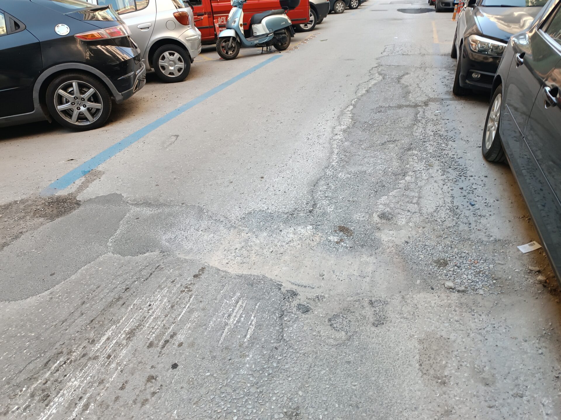 Τα συνεργεία κάθε τόσο προβαίνουν στα γνωστά μπαλώματα, αλλά ο δρόμος αρνείται να συμμορφωθεί και σταδιακά υποχωρεί. Το αποτέλεσμα είναι η τρύπα που δημιουργείται να γίνεται άκρως επικίνδυνη και ζημιογόνα για πεζούς και οχήματα. Το σημείο γίνεται ακόμα πιο επικίνδυνο, όταν βρέχει διότι οι διερχόμενοι δεν αντιλαμβάνονται την παγίδα του δρόμου.