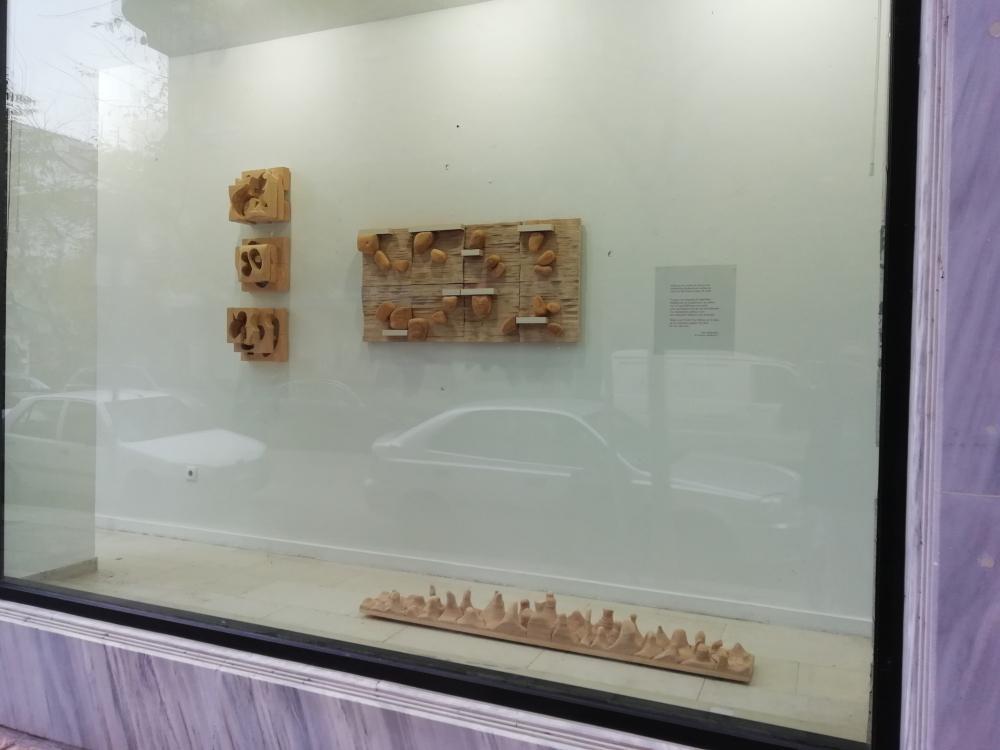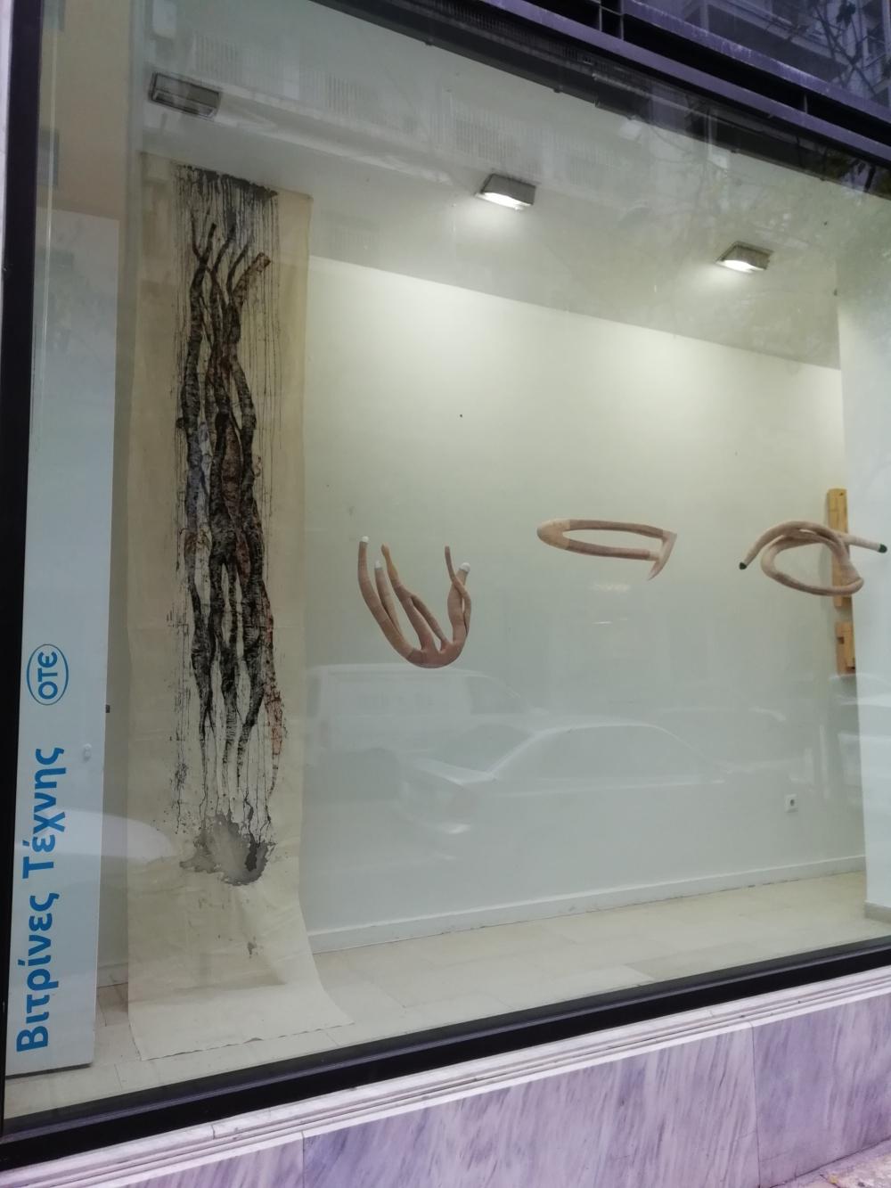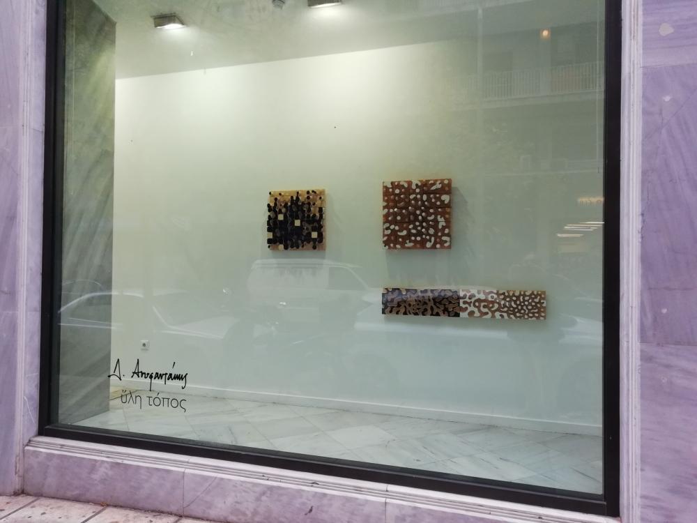 Στις Βιτρίνες Τέχνης του ΟΤΕ ο Δημήτρης Ανυφαντάκης, αρχιτέκτονας που ζει και εργάζεται στη Θεσσαλονίκη, εκθέτει μία συλλογή έργων από ξύλο μαζί με ένα ζωγραφικό με λάδι σε ύφασμα, με τίτλο «ὓλη τόπος».