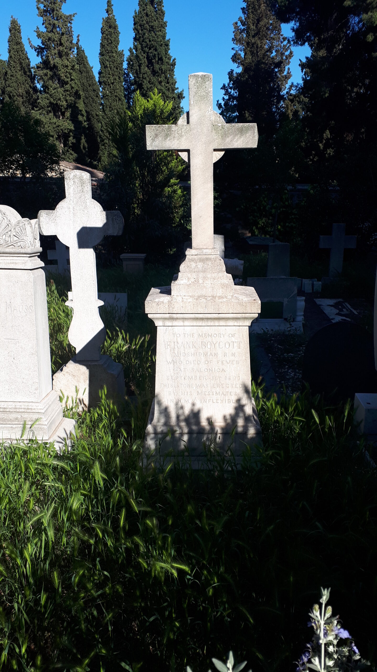 Ενώ το πλοίο βρισκόταν στη Θεσσαλονίκη, ο Boycott προσβλήθηκε από πυρετό, από τον οποίο πέθανε το 1893. Υπέστη έτσι την ίδια θλιβερή μοίρα με αρκετούς άλλους Άγγλους δόκιμους που επίσης αρρώστησαν εδώ, πέθαναν και θάφτηκαν σε αυτό το νεκροταφείο. Η ταφόπλακα ανεγέρθηκε από τους συντρόφους του.