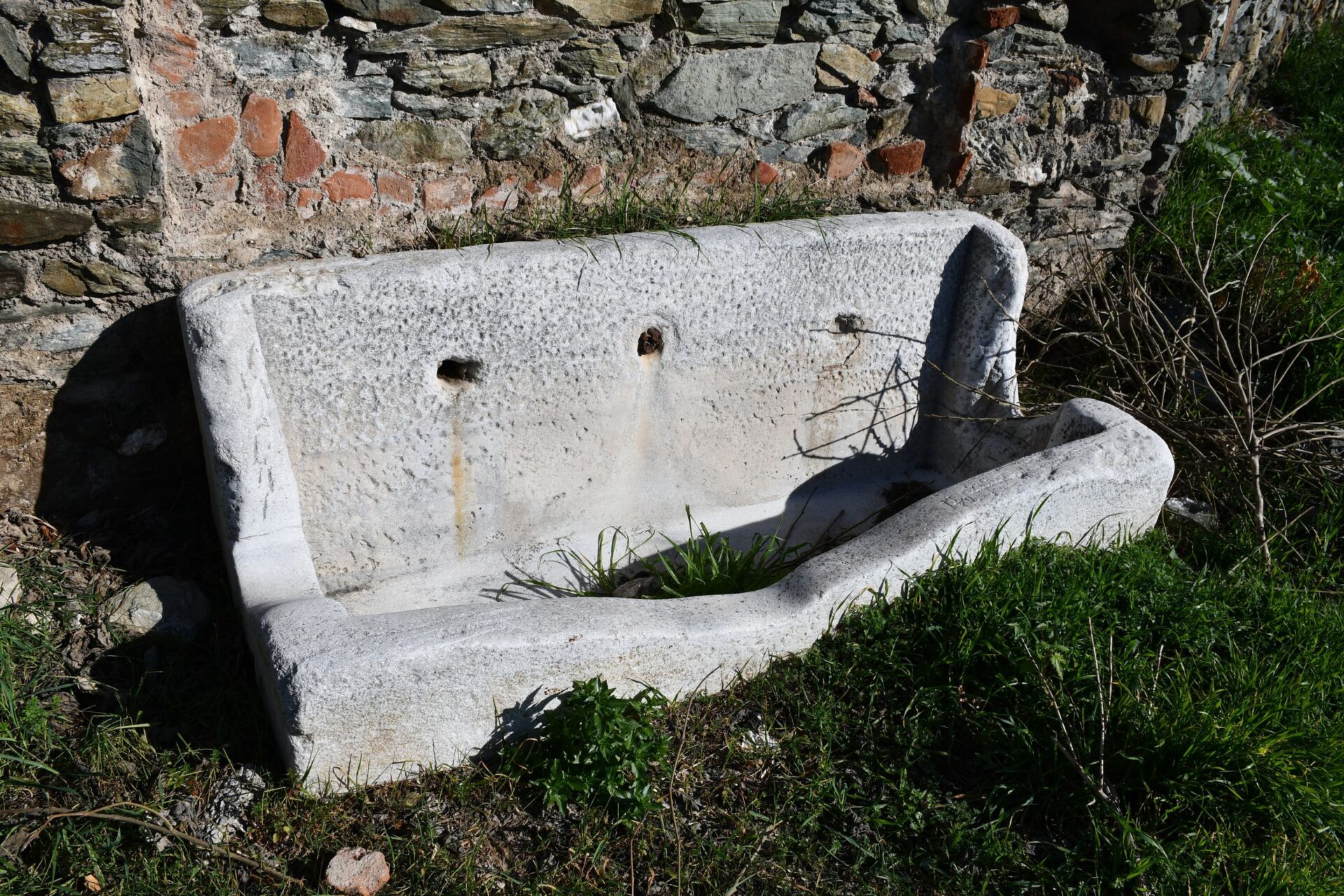 Το πιο εντυπωσιακό χαρακτηριστικό της είναι η λεκάνη συλλογής του νερού η οποία στην ουσία είναι μια μαρμάρινη αρχαία σαρκοφάγος, σε δεύτερη χρήση, πράγμα που συνηθιζόταν στο παρελθόν.