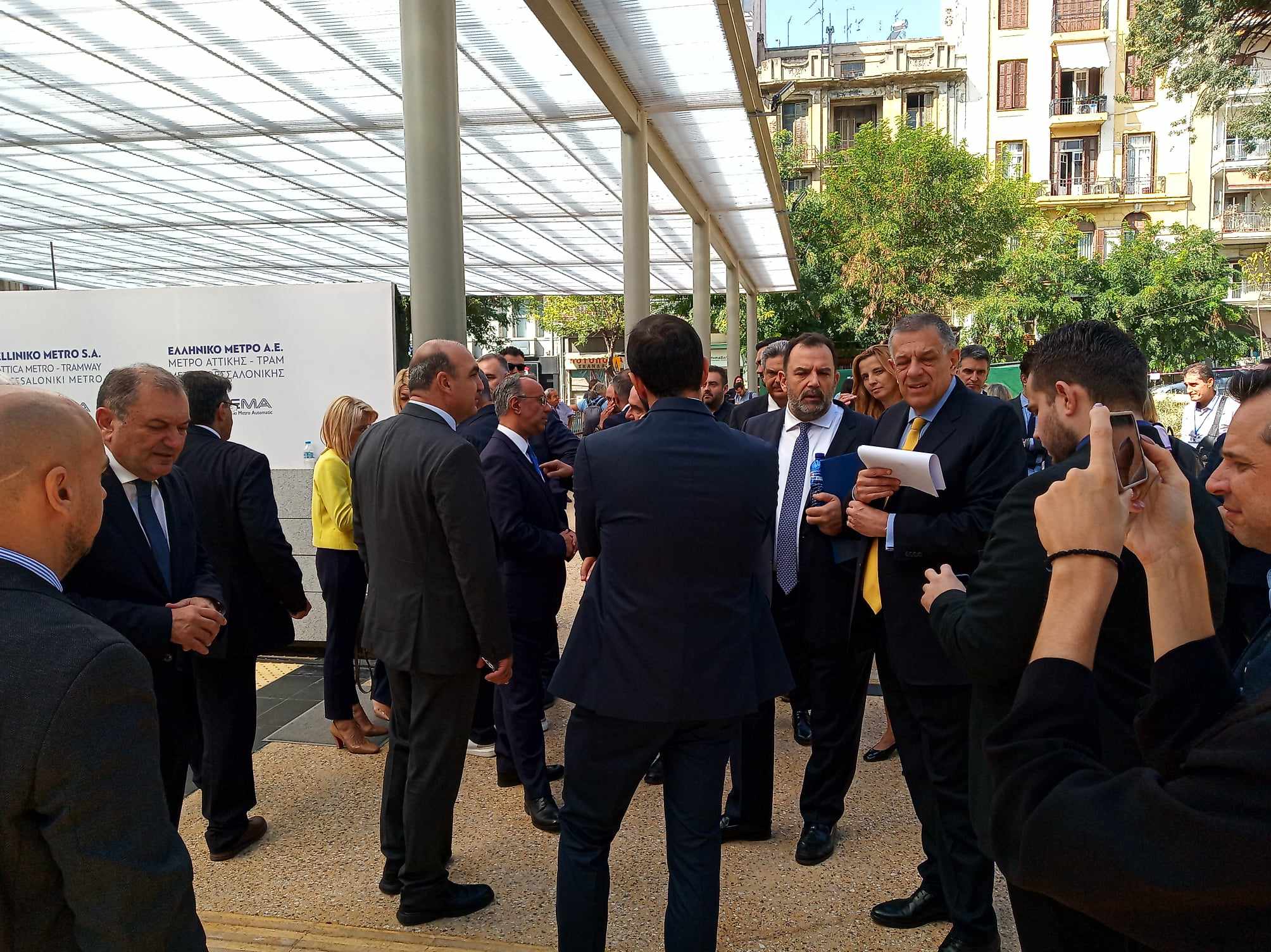 Στην εκδήλωση παρέστησαν ο υπουργός Υποδομών και Μεταφορών Χρηστος Σταϊκούρας, η υπουργός Πολιτισμού Λίνα Μενδωνη, ο αναπληρωτής υπουργός Οικονομικών Νίκος Παπαθανάσης, ο υφυπουργός Υποδομών Νίκος Ταχίαος, ο υφυπουργός Εσωτερικών (Μακεδονίας και Θράκης) Στάθης Κωνσταντινίδης, η υφυπουργός Μεταφορών Χριστίνα Αλεξοπούλου, ο γενικός γραμματέας Μεταφορών Κωνσταντινος Μαγουλας, ο γενικός γραμματέας Υποδομών Γιάννης Ξιφαράς, ο γενικός γραμματέας Πολιτισμού Γιώργος Διδασκάλου, ο δήμαρχος Θεσσαλονίκης Κωνσταντίνος Ζέρβας, η αντιπεριφερειάρχης Βούλα Πατουλίδου, ο πρώην γραμματέας Υποδομών Γ. Καραγιάννης, βουλευτές, ο διευθύνων σύμβουλος της “Ελληνικό Μέτρο” Νίκος Κουρετας και εκπρόσωποι της αναδόχου κοινοπραξίας (Thema Α.Ε.).