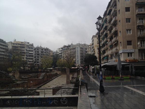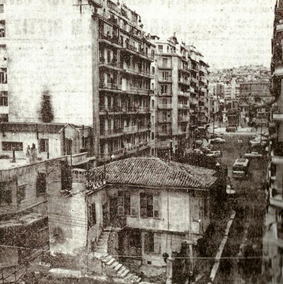 1967, Οδός Δημητρίου Γούναρη πριν την ανασκαφή. Στο βάθος διακρίνεται η Ροτόντα. Η φωτογραφία είναι από το βιβλίο “Η Χαμένη εγνατία της Θεσσαλονικής” των Αναστασιάδη Χεκίμογλου εκδ. University Studio Press.