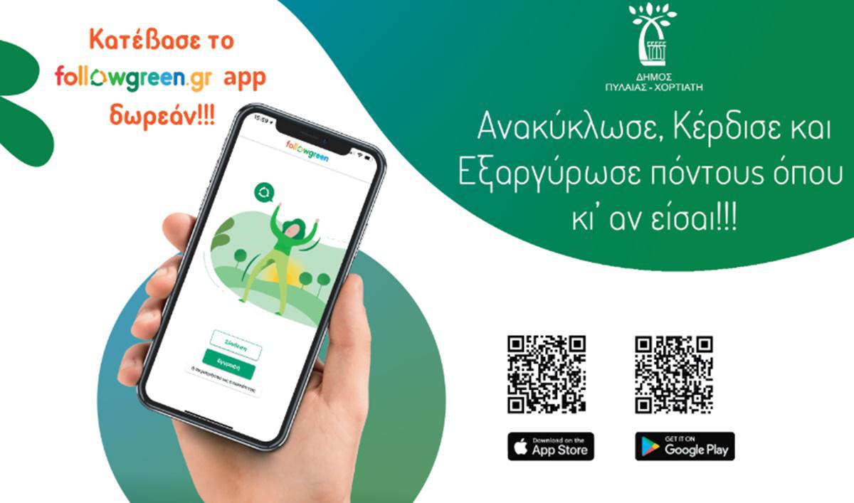 Διαθέσιμη και για κινητά τηλέφωνα είναι στο εξής η διαδικτυακή πλατφόρμα επιβράβευσης της ανακύκλωσης Followgreen δήμου Πυλαίας-Χορτιάτη! Η εφαρμογή αποτελεί μία καινοτομία του δήμου, καθώς επιβραβεύει την ανακύκλωση των πολιτών, όπου και αν βρίσκονται.