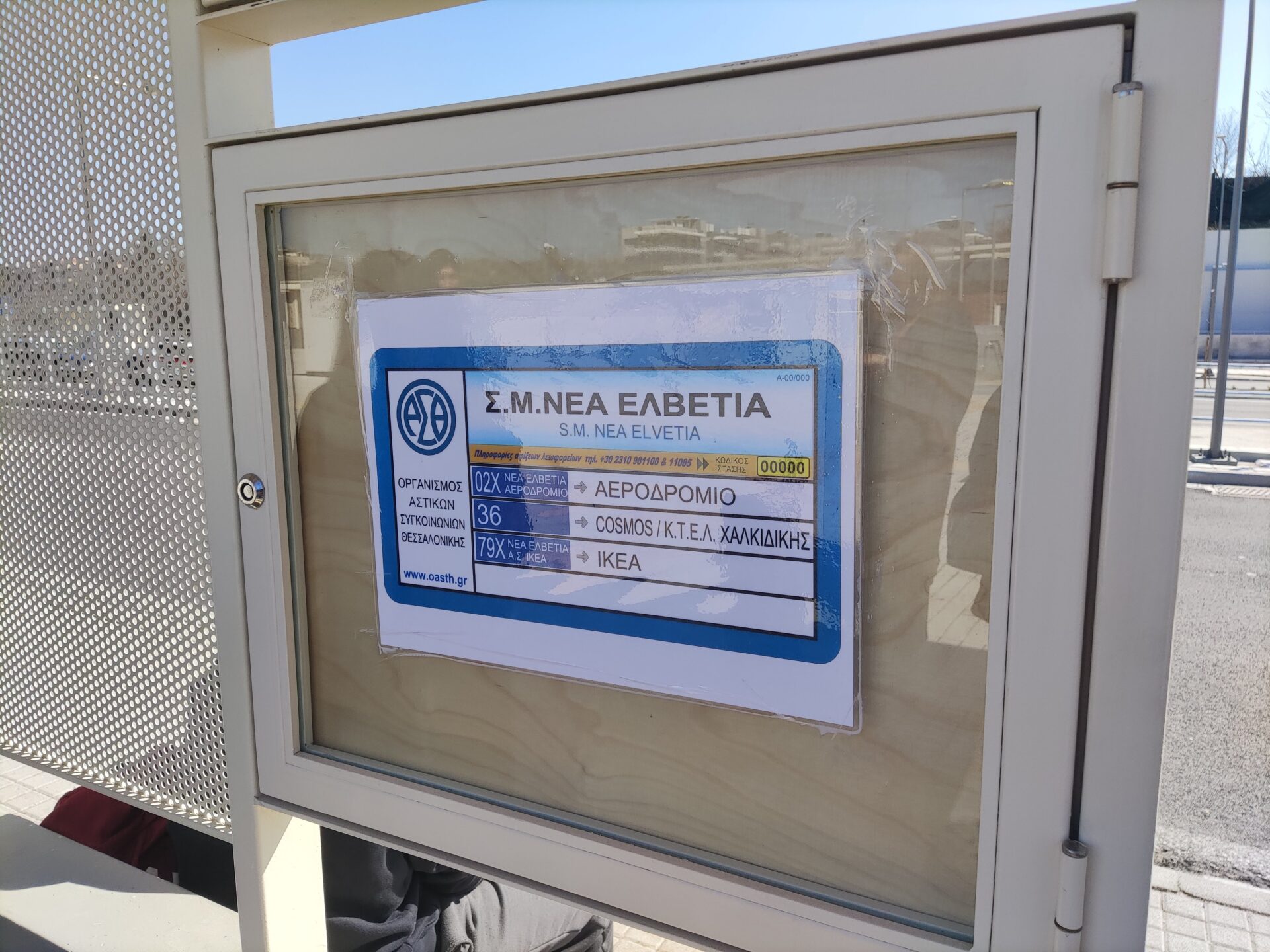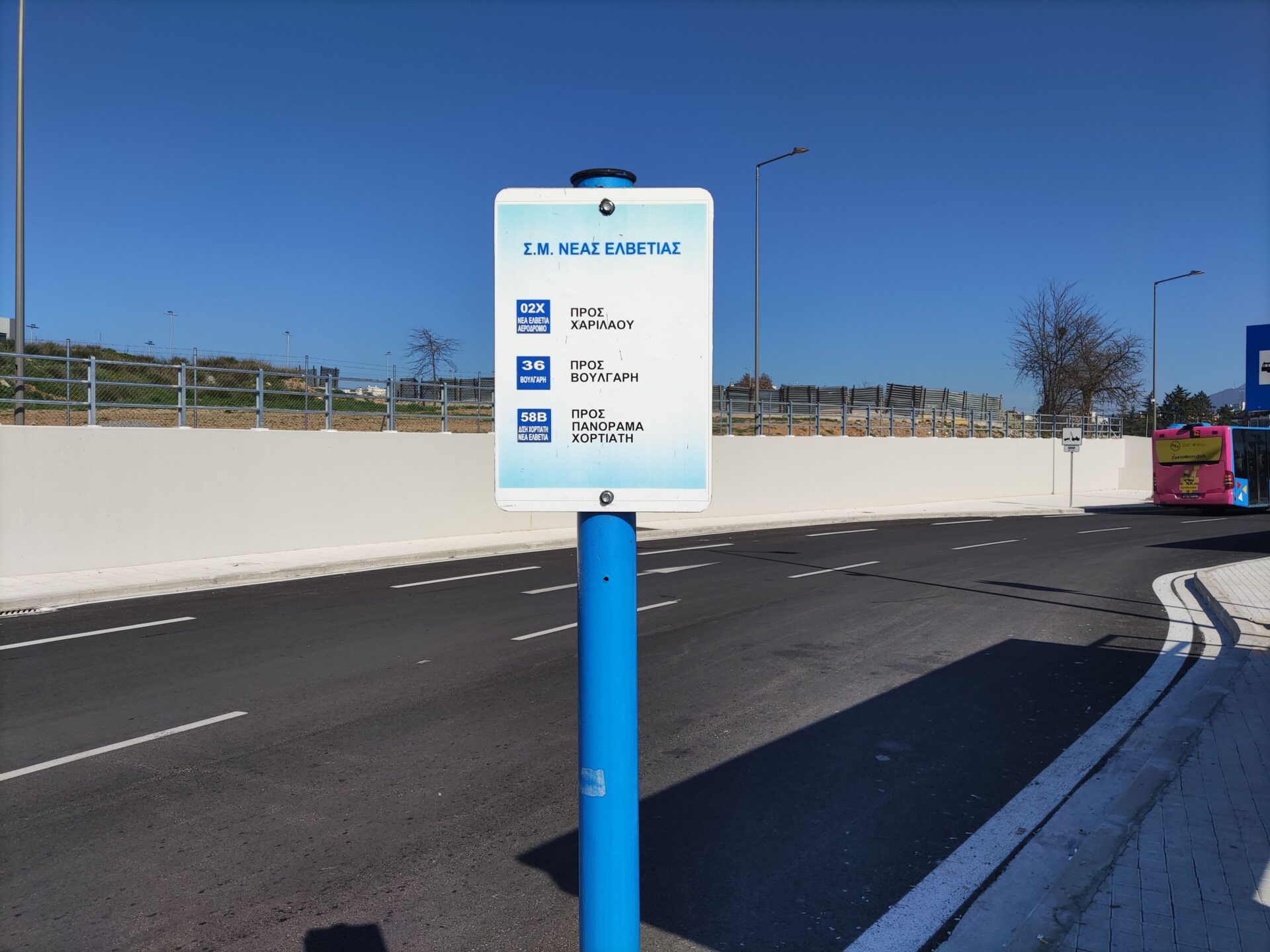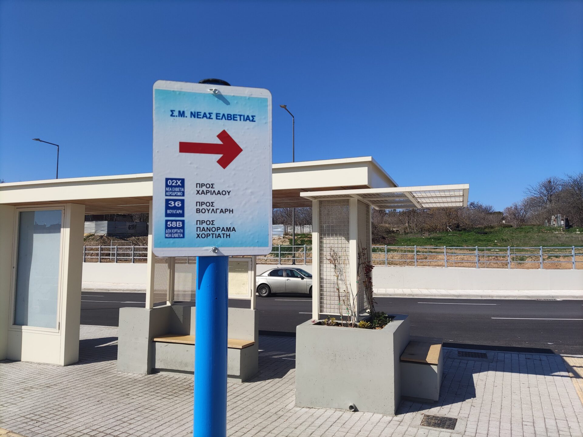 Ερχόμενοι στο κομμάτι των λεωφορειακών γραμμών, προς το παρόν δεν έχουν τοποθετηθεί πίνακες δρομολογίων και στύλοι τηλεματικής, παρά μόνο προσωρινή σήμανση με τα ονόματα των γραμμών. Μένει να φανεί αν και πότε θα τοποθετηθεί ο ανάλογος εξοπλισμός από τον αρμόδιο ΟΣΕΘ. Για την ώρα, υπάρχουν μόνο ανοιχτές υποδοχές με καλωδίωση στο πεζοδρόμιο.