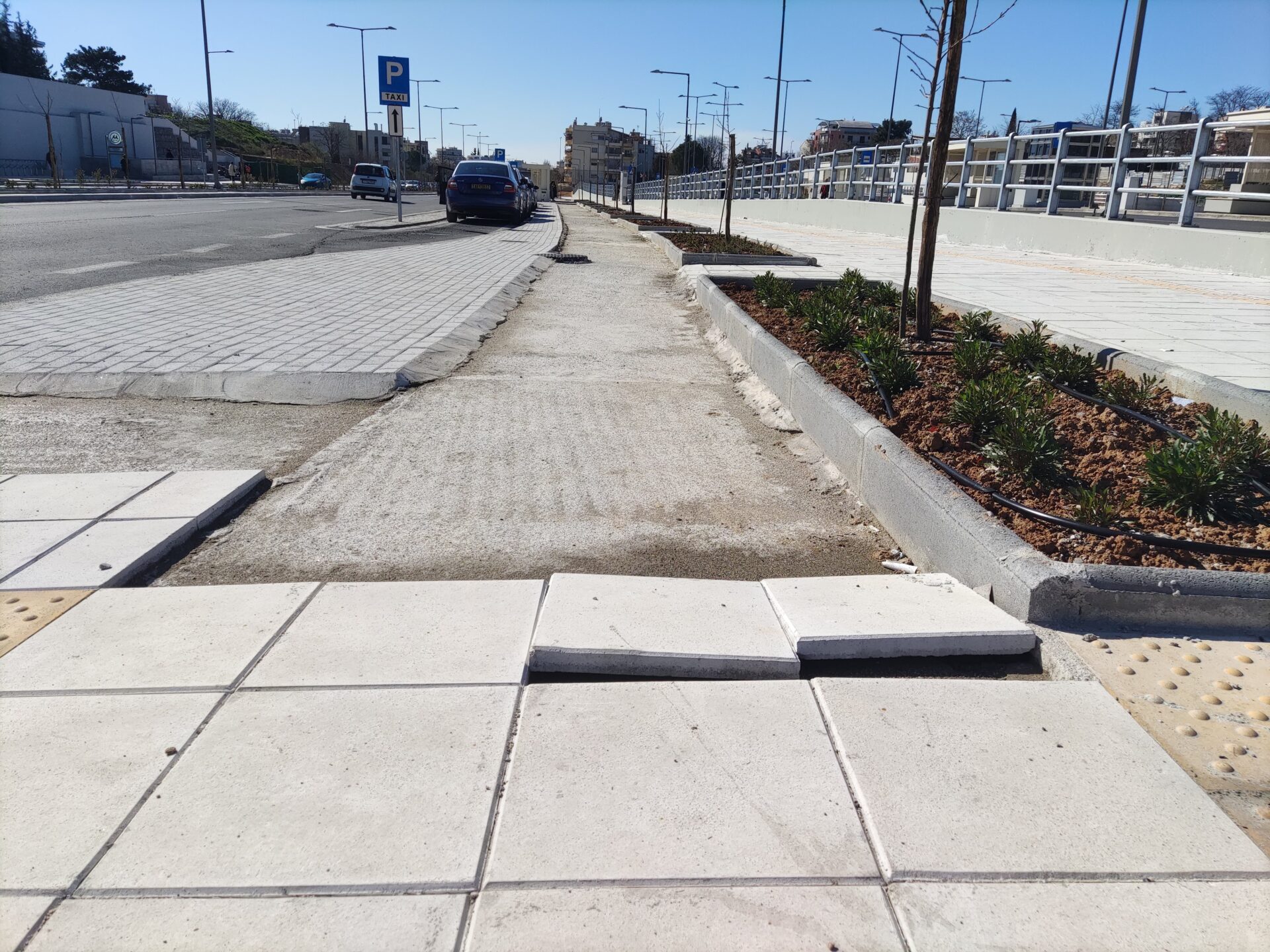 Επίσης, ο κ. Λεμονής εφιστά την προσοχή για το γεγονός ότι ο προσωρινός πεζόδρομος από το σταθμό μετεπιβίβασης μέχρι την Αλλατίνη καταλήγει σε ένα σημείο χωρίς καθόλου πεζοδρόμια και διάβαση: «Τα αυτοκίνητα περνάνε με απίστευτα γρήγορες ταχύτητες και δεν υπάρχει καμία σήμανση που να τους λέει να κόβουν ταχύτητα».