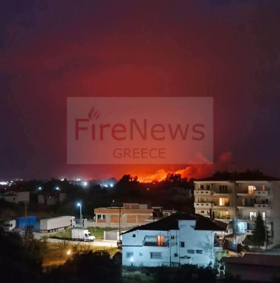 Μεγάλη φωτιά σε εξέλιξη που προκλήθηκε από κεραυνό στην Άνω Περαία κατευθύνεται στο γυμνάσιο Νέων Επιβατών.