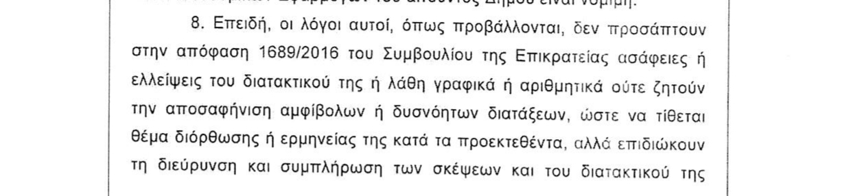 Οι νέες αποφάσεις του ΣτΕ αναφέρουν ότι δεν υπάρχουν ασάφειες στις αποφάσεις του 2016 και συνεπώς, και όπως υποστηρίζει σχεδόν σύσσωμη η αντιπολίτευση του δήμου Καλαμαριάς, υφίσταται η κρίση του Συμβουλίου που «εξαφανίζει» την απόφαση του Εφετείου και κατά συνέπεια παρέχει τη δυνατότητα στο δήμο Καλαμαριάς, να ακυρώσει τις δύο οικοδομικές άδειες.