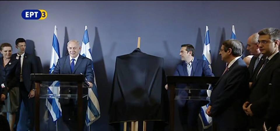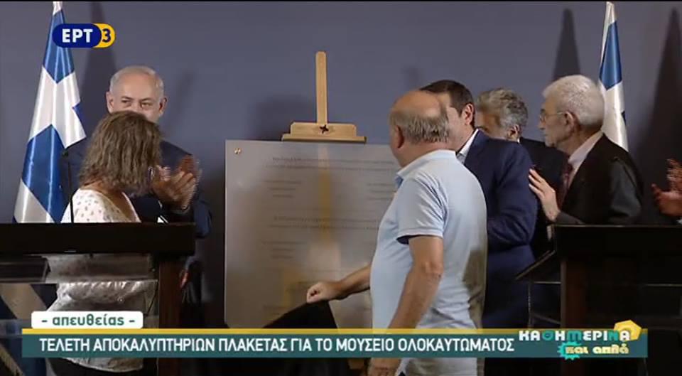Τα αποκαλυπτήρια έκαναν μαζί οι πρωθυπουργοί της Ελλάδας και του Ισραήλ, Αλέξης Τσίπρας και Μπέντζαμιν Νετανιάχου, αμέσως μετά την ολοκλήρωση των εργασιών του Ανωτάτου Συμβουλίου Συνεργασίας των δύο χωρών και πριν από την έναρξη της Τριμερούς Συνόδου Κορυφής Ελλάδας-Κύπρου-Ισραήλ, το συνεδριακό κέντρο του Μεγάρου Μουσικής. Μάλιστα, ο κ. Τσίπρας εξέφρασε τη βούληση να εγκαινιάσουν μαζί με τον κ. Νετανιάχου τη λειτουργία του Μουσείου Ολοκαυτώματος, κάτι που δέχθηκε με μεγάλη ικανοποίηση και χαρά ο πρωθυπουργός του Ισραήλ.