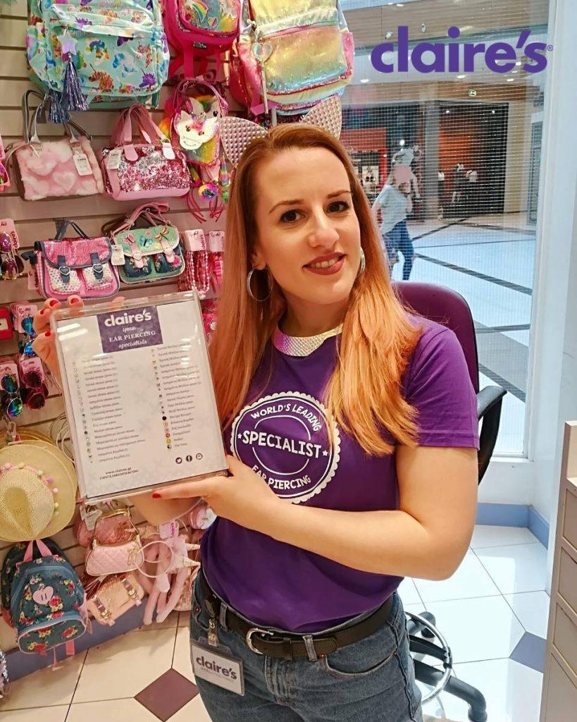 Αξίζει να σημειωθεί πως τα καταστήματα Claire’s είναι παγκόσμιος προορισμός για τρύπημα αυτιών σε μεγάλους και μικρούς, πάντα ακολουθώντας όλες τις προδιαγραφές και τους κανόνες υγιεινής.