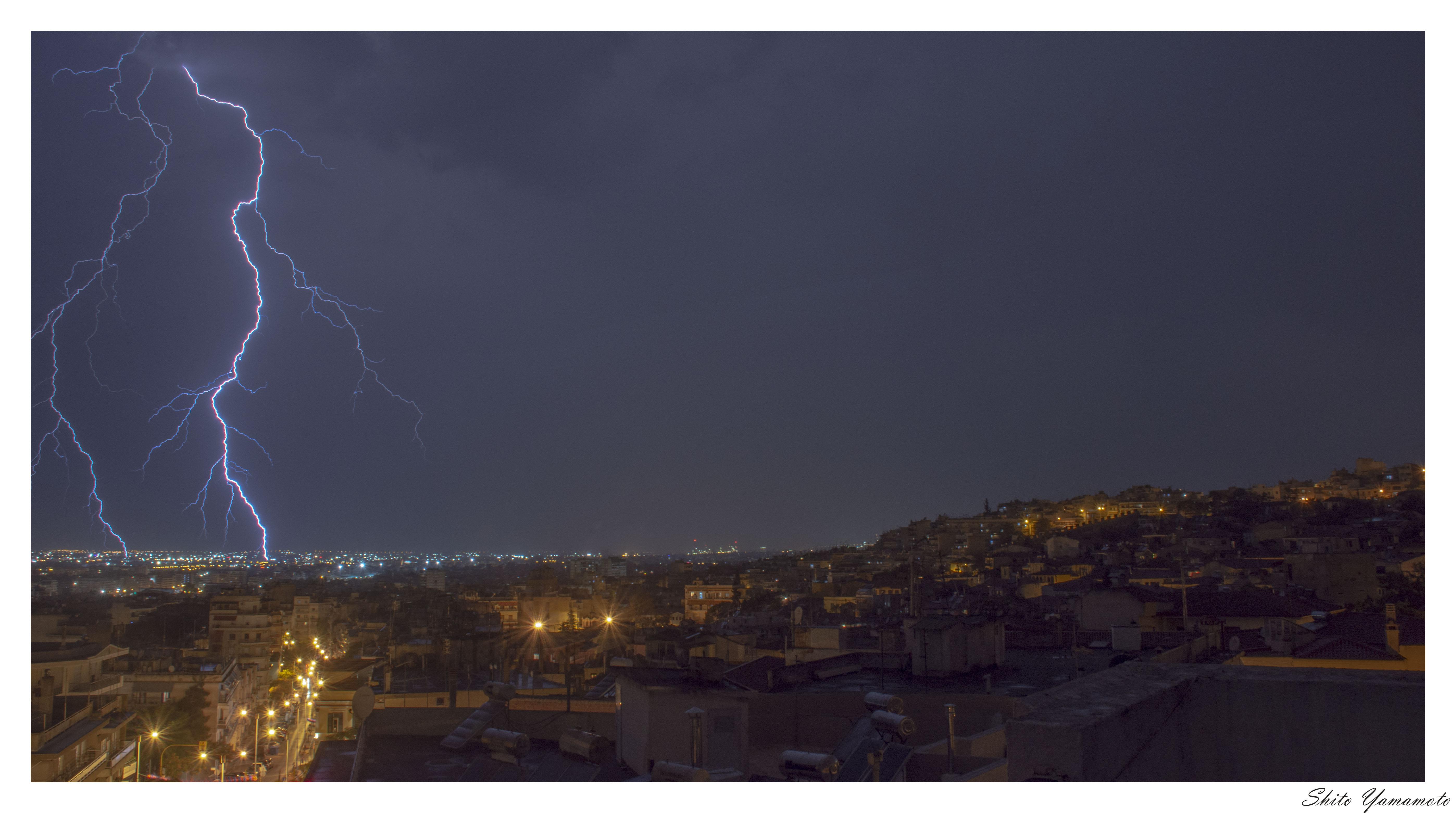 Μετά από ένα μακροχρόνιο καύσωνα η αποψινή καταιγίδα έμοιαζε με λύτρωση. Ο φακός του Αποστόλη Σιμόπουλου απαθανάτισε τον ουρανό.