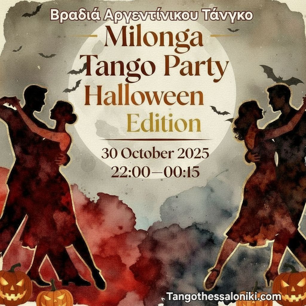Η Milonga Tango Party Halloween Edition φέρνει την ατμόσφαιρα του Halloween στην καρδιά του αργεντίνικου τάνγκο στη Θεσσαλονίκη. Θεματικές cortinas, σύντομες tanditas ενός ή δύο τραγουδιών και το παιχνιδιάρικο Trick or Dance δημιουργούν μια βραδιά με συνεχή ροή, κομψό χιούμορ και σεβασμό στην εθιμοτυπία. Το dress code ενθαρρύνει κομψές μεταμφιέσεις ή διακριτικά Halloween στοιχεία ώστε η αισθητική να αναδεικνύει την κίνηση και να γράφει ιδανικά στις φωτογραφίες. Η Αργεντινή συναντά τη Θεσσαλονίκη σε μια θεματική εμπειρία όπου η παράδοση συνδέεται φυσικά με το σύγχρονο ύφος.