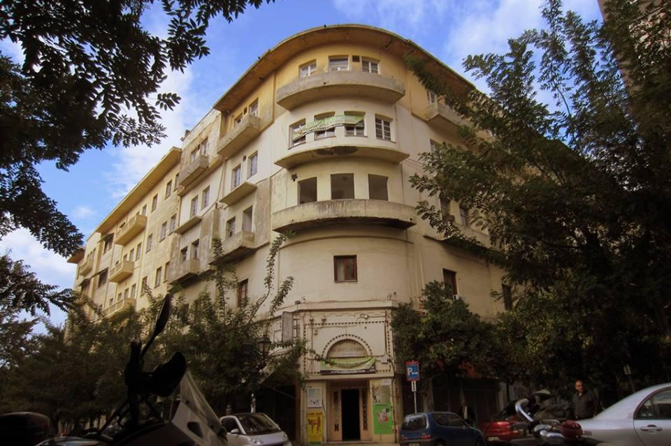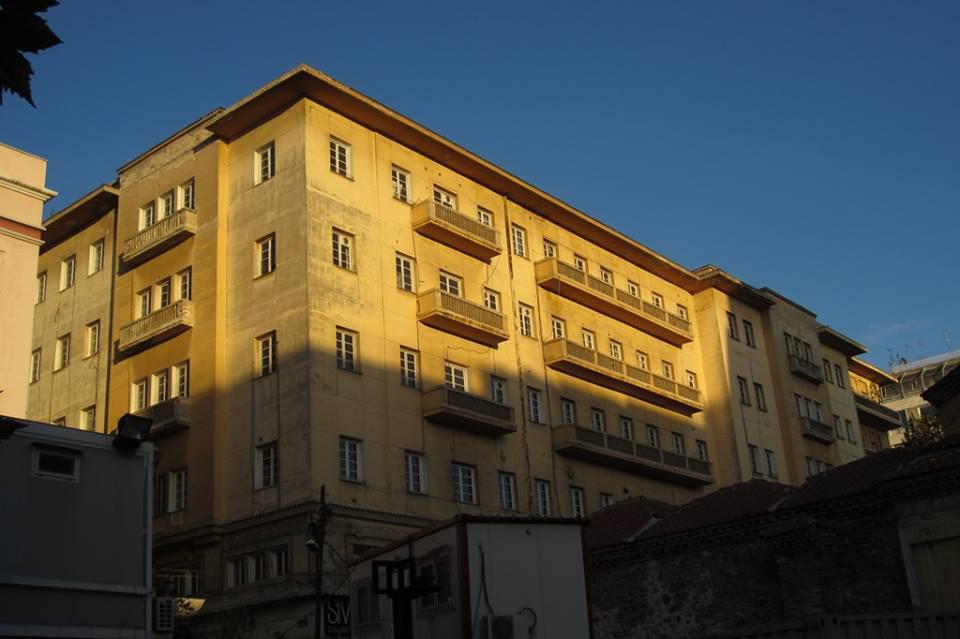 Το κτίριο μελετήθηκε για ξενοδοχείο. Αυτό βοήθησε να φιλοξενηθούν στα γεγονότα του 1946-1949 πολλές οικογένειες που ήρθαν στην πόλη από τα χωριά της Μακεδονίας. Ο ημιτελής σκελετός του από μπετόν χωρίς πόρτες, παράθυρα και τζάμια, καλύφθηκε από σεντόνια και υφάσματα, προκειμένου οι φιλοξενούμενοί του να προφυλάσσονται από το κρύο και τα βλέμματα των περιοίκων.
